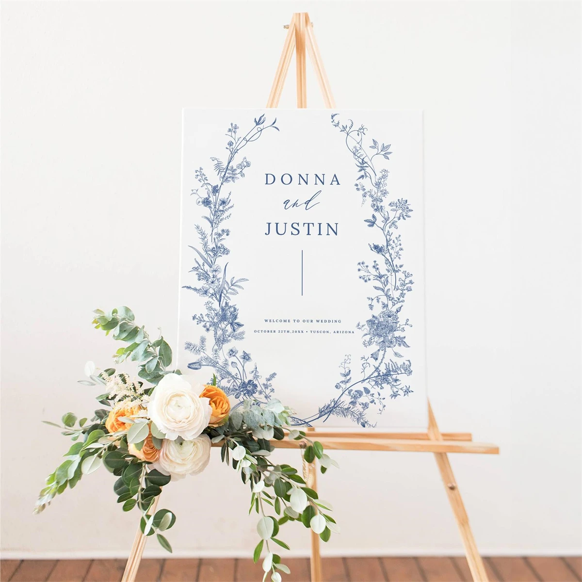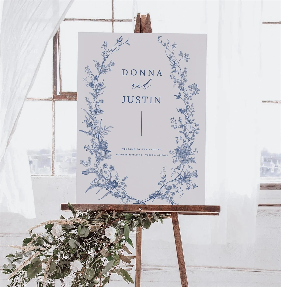 Navy Blue Floral Welcome Sign Template, Victorian,Canva