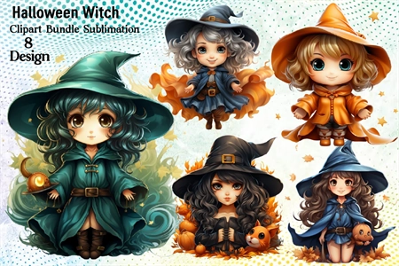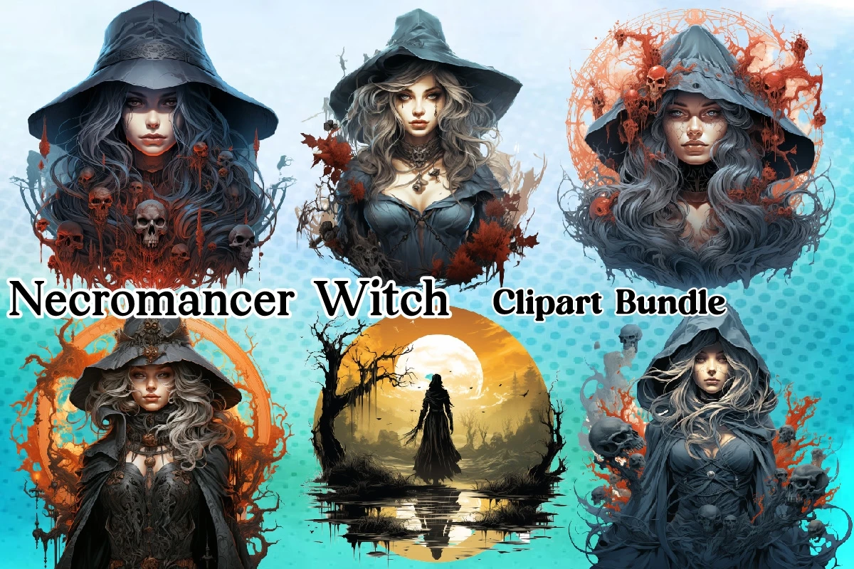 Watercolor Necromancer Witch Clipart PNG Bundle