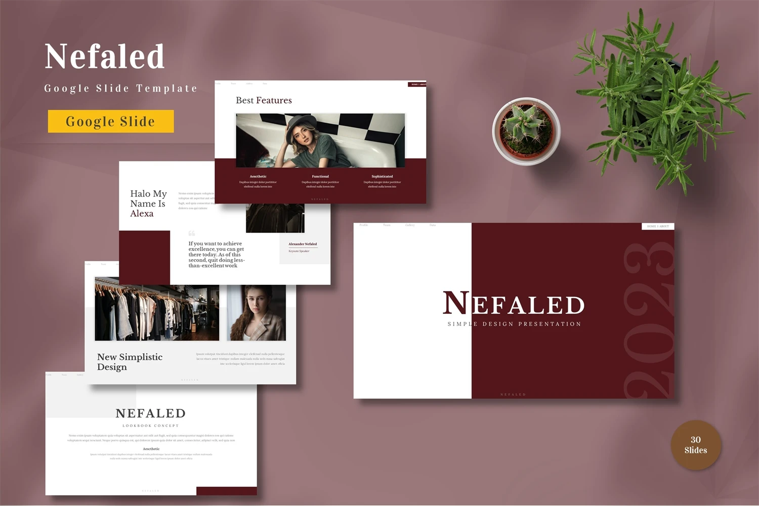 Get it now! **Nefaled - Google Slide Template** for All Business and Personal Needs All elements on this template are editable; input your content, replace your image with a placeholder, change the color, and all presentations include an animated slide to present your slides.