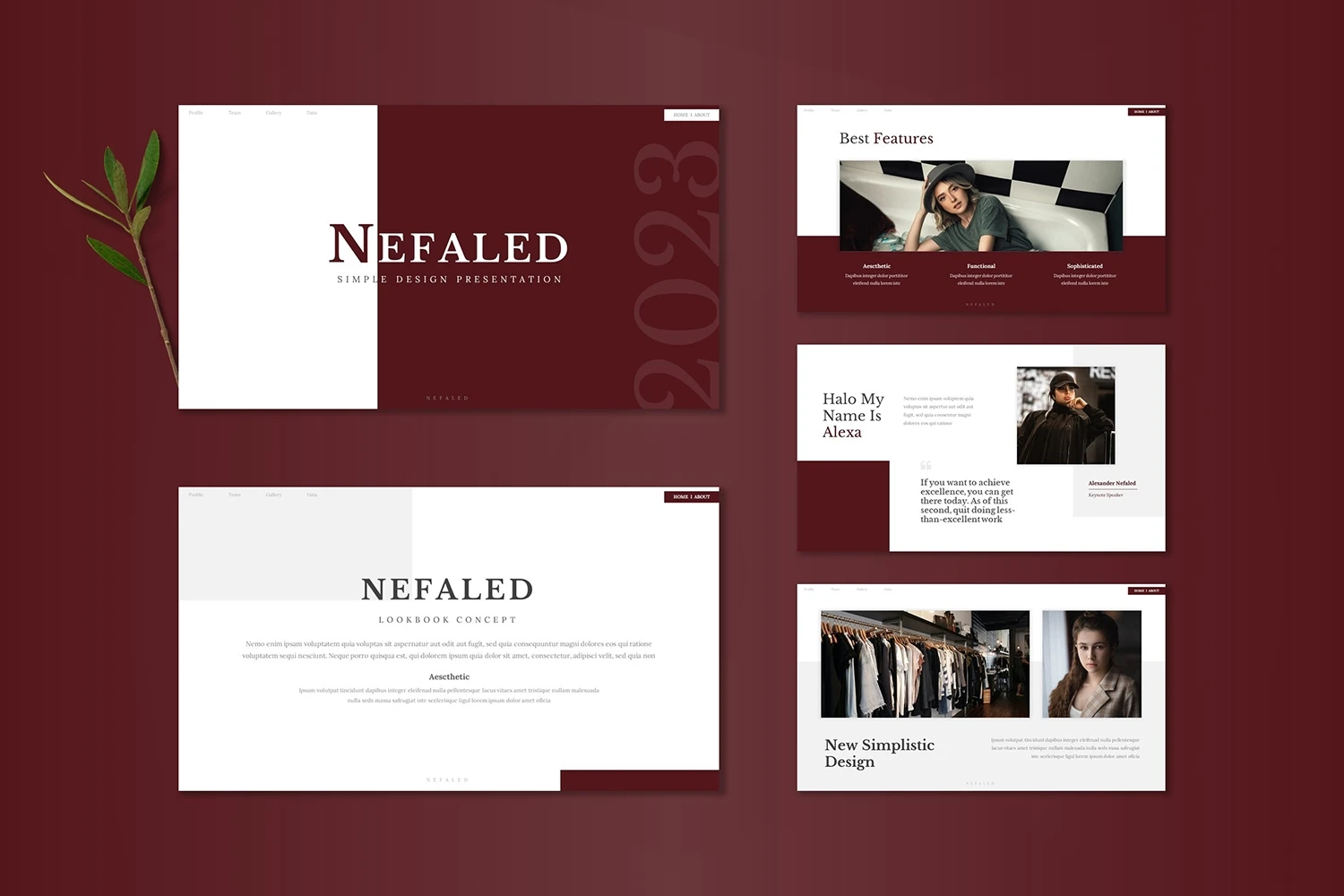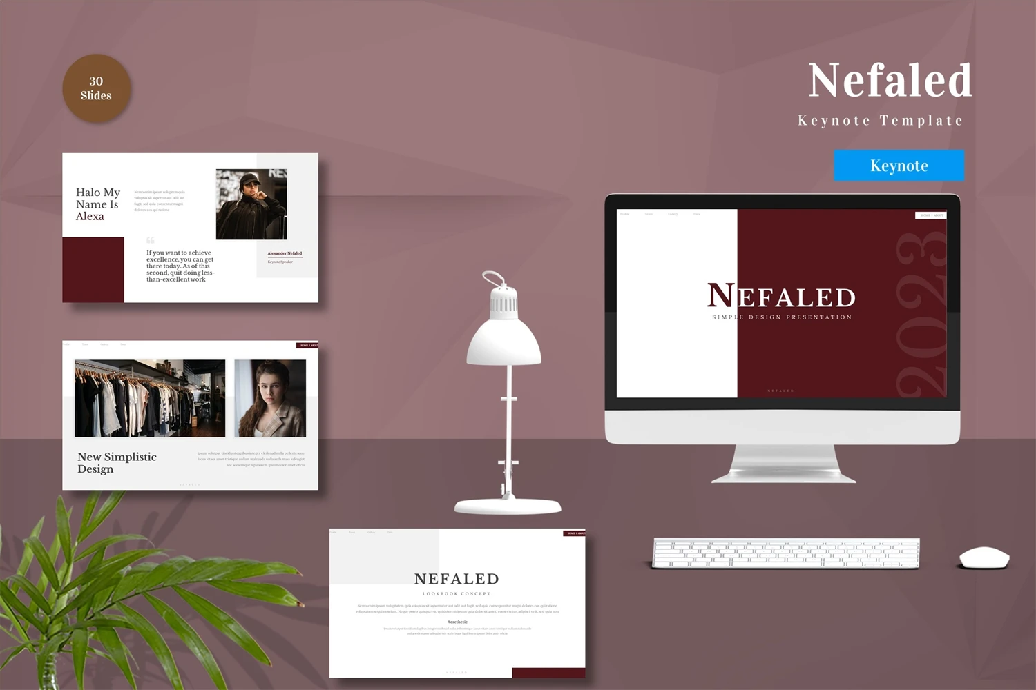Get it now! **Nefaled - Keynote Template** for All Business and Personal Needs All elements on this template are editable; input your content, replace your image with a placeholder, change the color, and all presentations include an animated slide to present your slides.