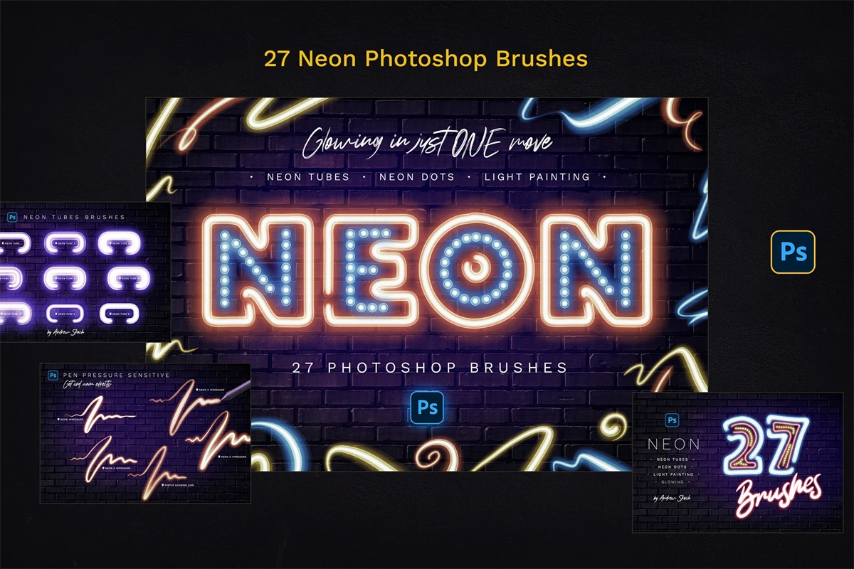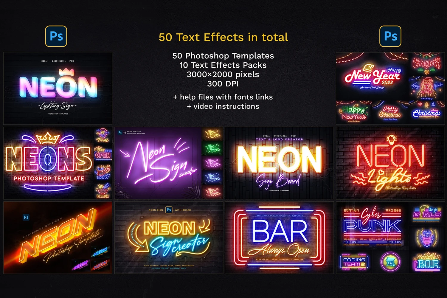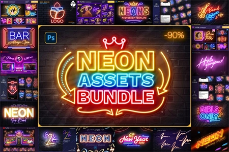 Unleash the vibrant allure of neon with our expansive Neon Assets Bundle! Elevate your design game with an extensive collection of captivating neon assets, including text effects, logo mockups, brushes, and social media templates. Crafted for Photoshop, this bundle empowers you to create stunning visuals across various platforms effortlessly.