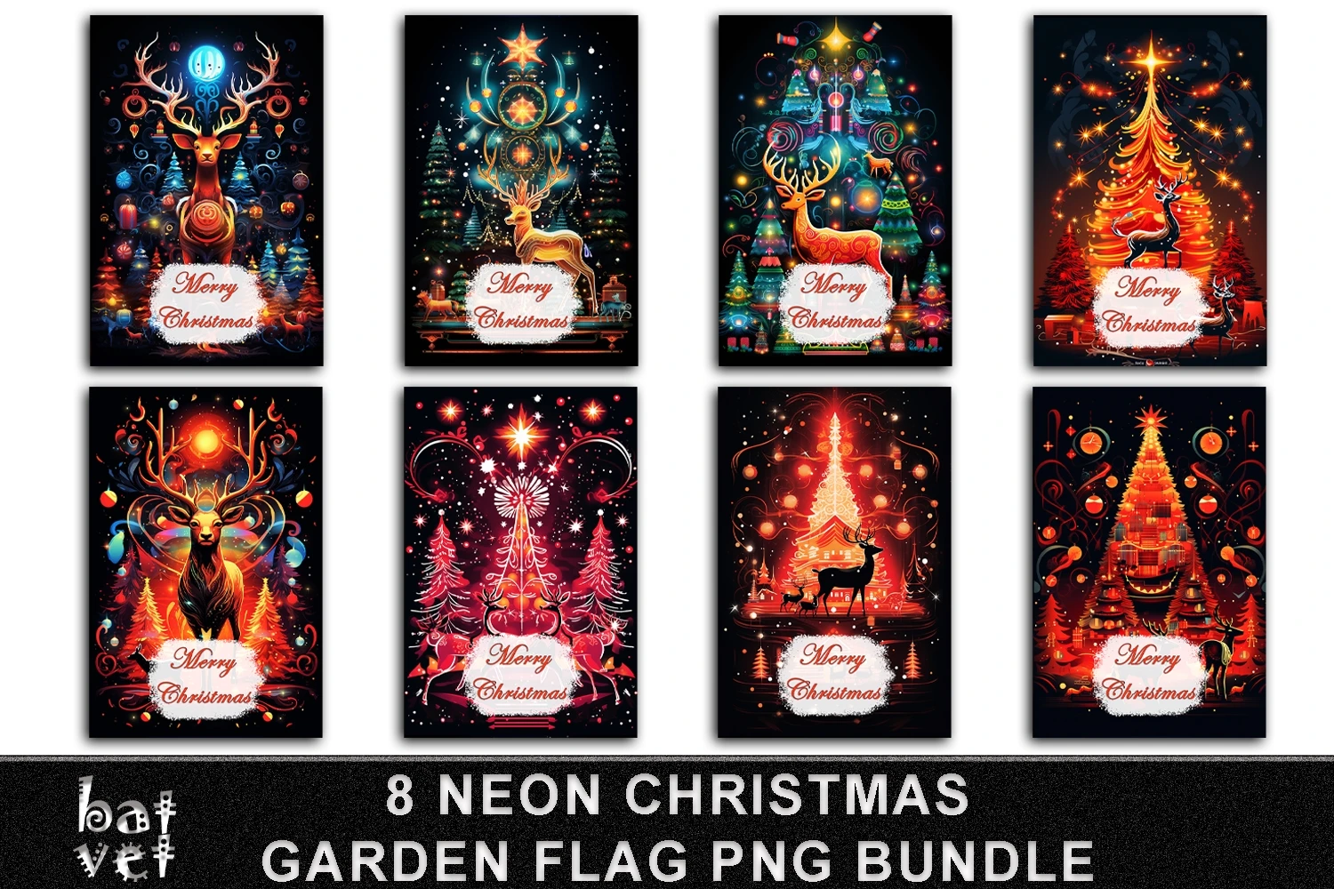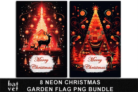 Neon Christmas Garden Flag Bundle / Neon Christmas Yard Flag / 8 PNG Files