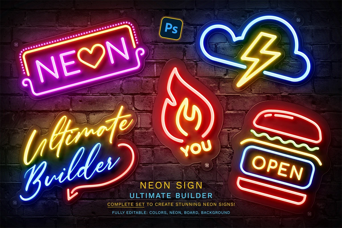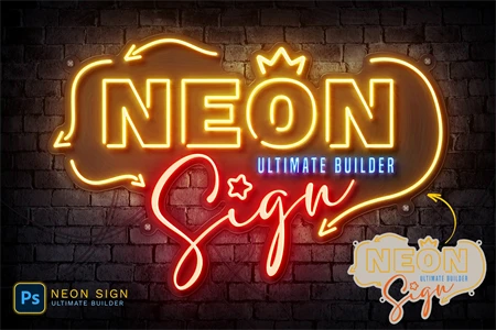You can make neon sign concept or use Neon Sign Ultimate Builder for print and web graphics. Advertisement graphics, banners, Instagram and Facebook banners, YouTube graphics, social media posts, flyers and posters, movie titles, promo ads and much more!
