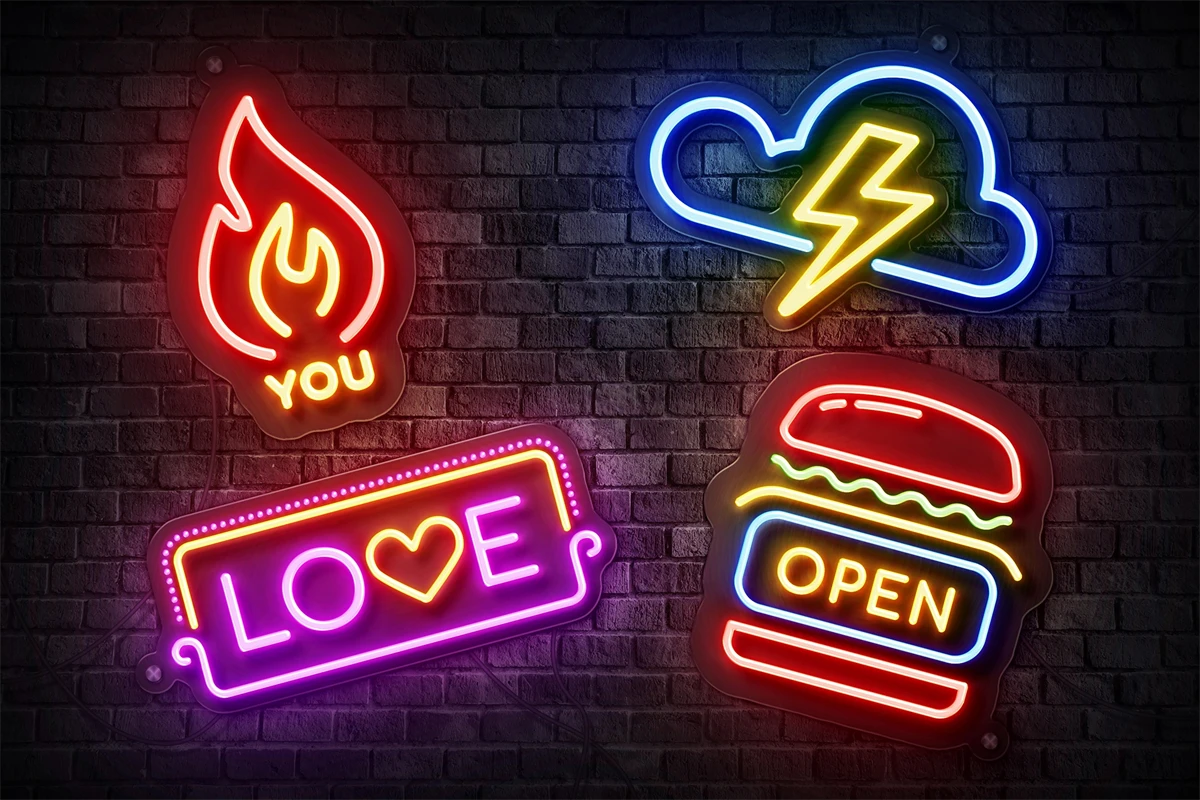 Most of customers uses Neon Sign Board Template to create neon sign from logo or text. But you can also make neon sign from different shapes, linear icons, outlined texts, logos and more.