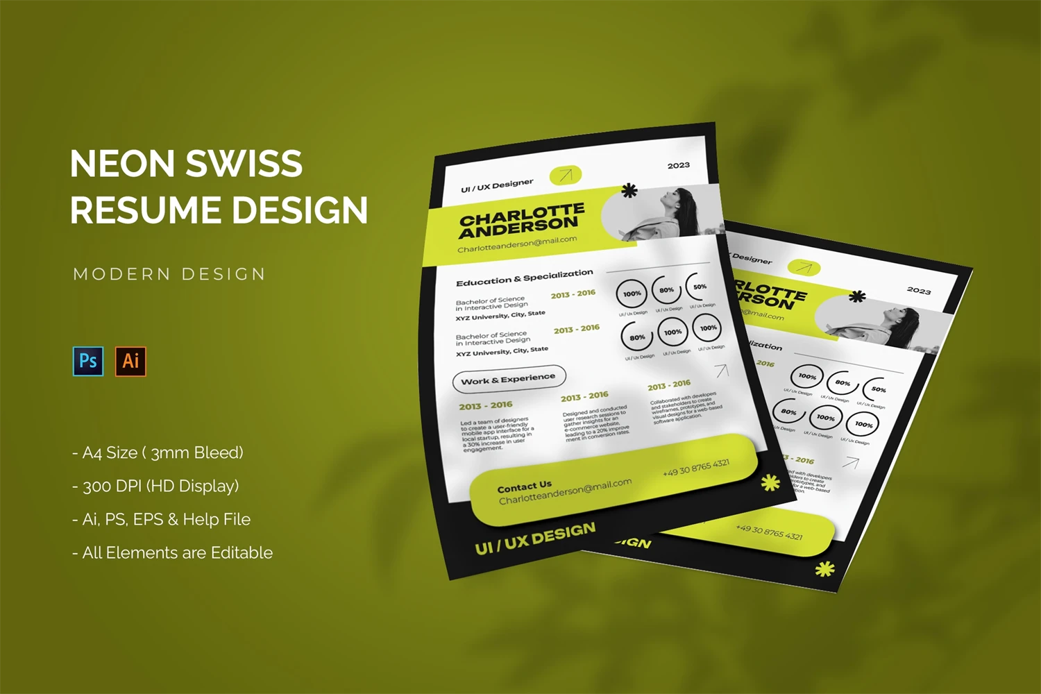 This is **Neon Swiss - Resume Template** Get it now!, CV Resume for All business and personal needs. This design is great for your business and will make your interest, elegant, and easily editable according to your needs (**Adobe Illustrator, Adobe Photoshop**). You can use this CV Resume for personal purposes, or company purposes, I hope you enjoy this, Hope you Like it, and dont forget to rate it, Thanks.