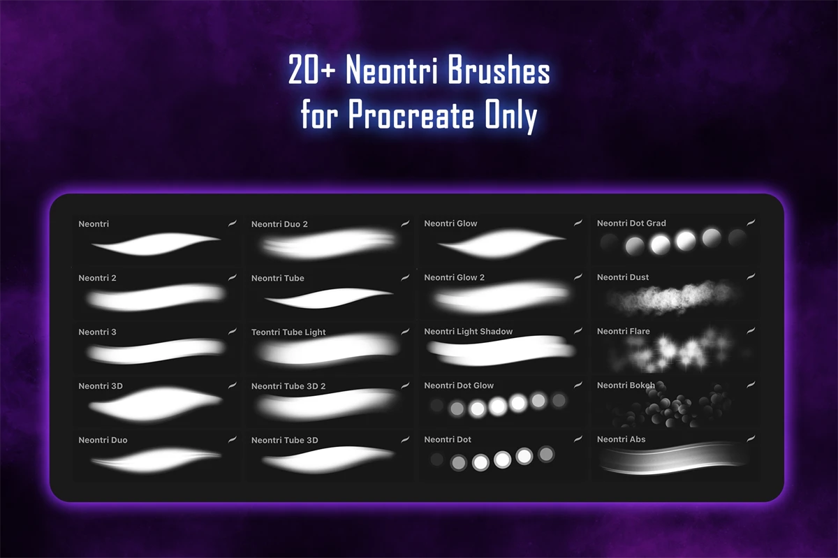 Neontri Brushes - Procreate Brush In this package you will find everything you need - for example, making logos, illustrations, or special backgrounds!. Using a brush is very simple - just place the brush strokes and select the appropriate brush from the brush panel.