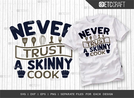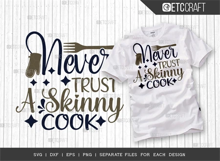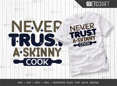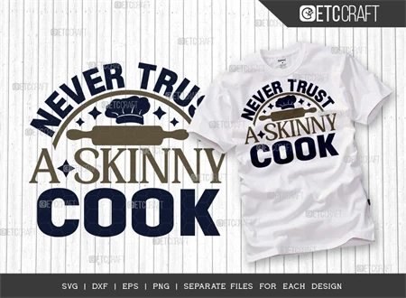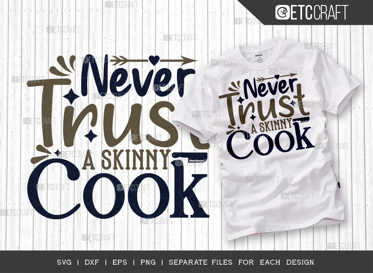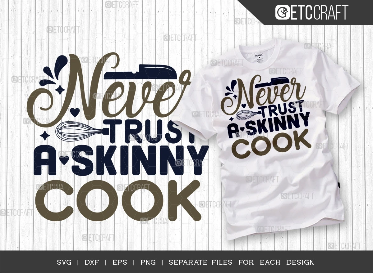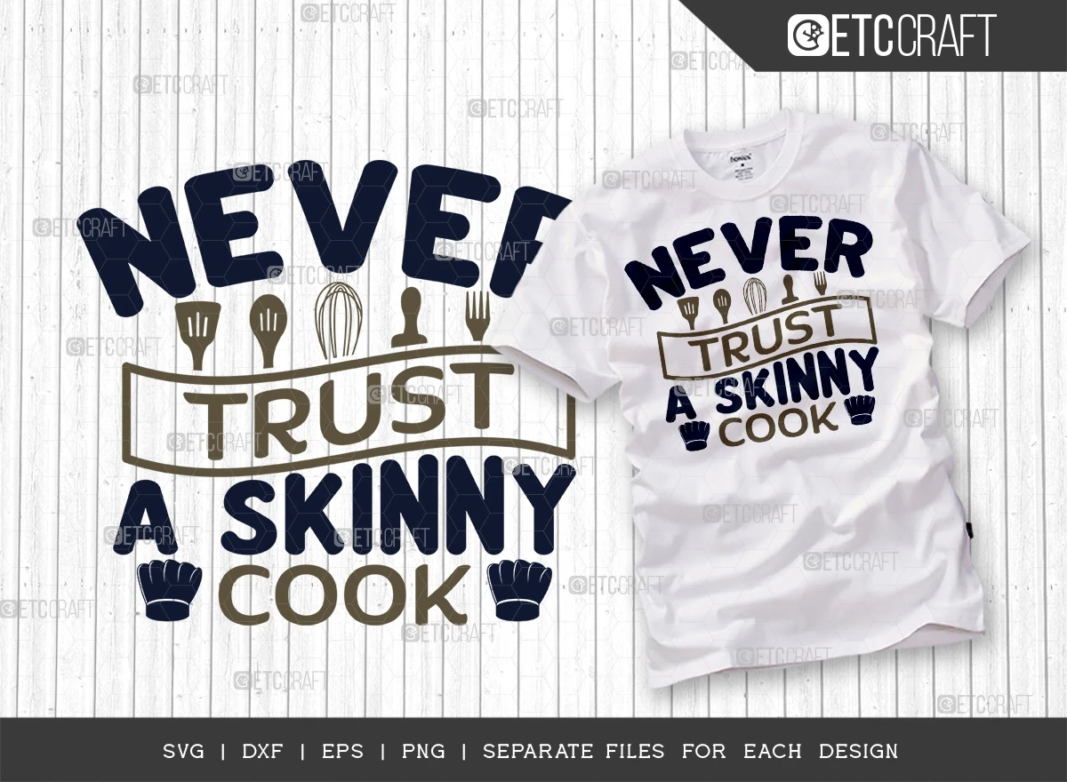 Our Never Trust A Skinny Cook SVG Bundle, a must-have for all cooking enthusiasts! This t-shirt design is perfect for anyone who loves to cook and wants to add a touch of humor to their kitchen attire.