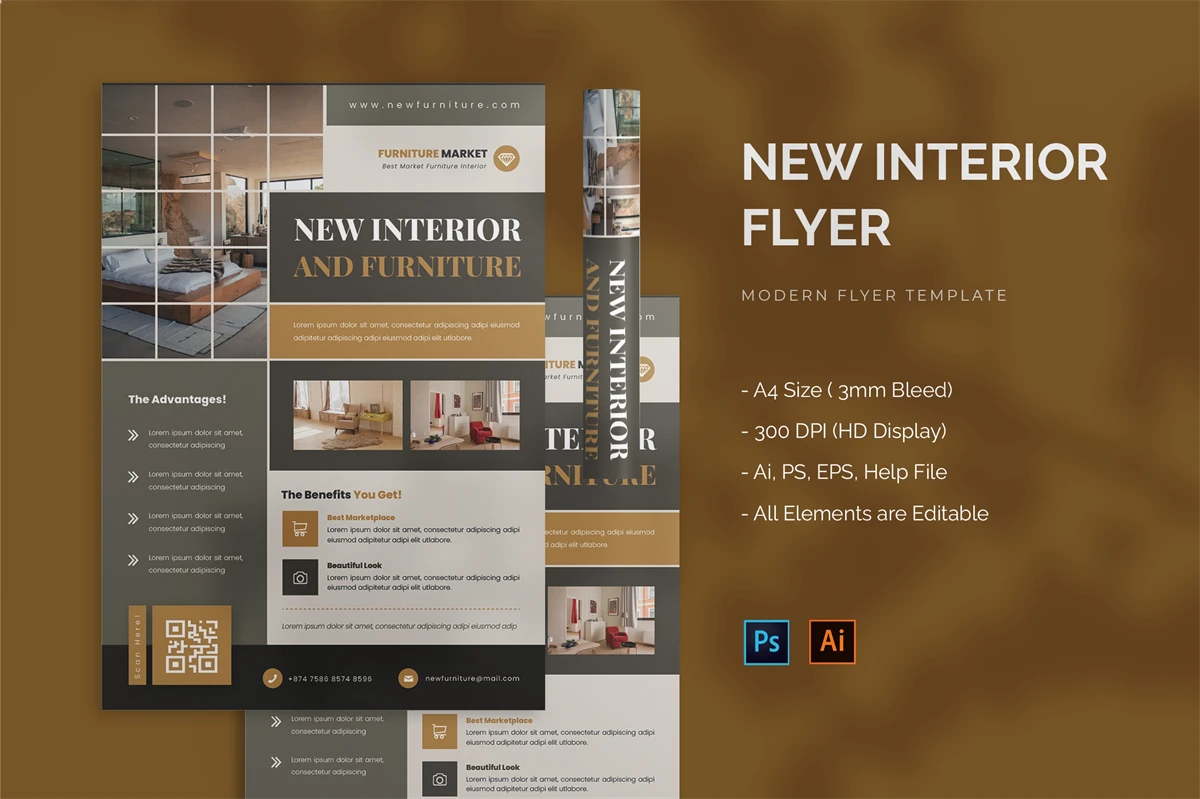 New Interior - Flyer. This Flyer template is designed for your company's business needs. very clean and elegant, and also easily edited and adjusted to your liking