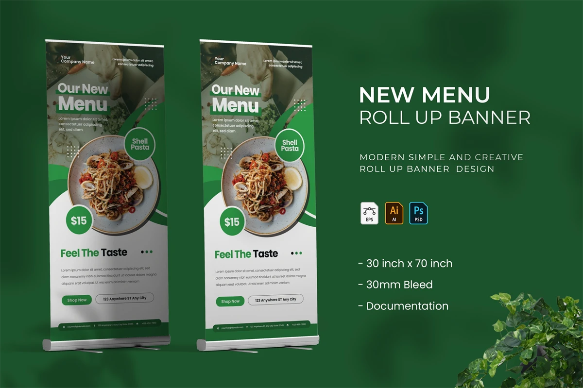 Roll-Up Banner Template: This is the best way to sell more furniture if you are selling it. With this beautiful roll-up banner, you can beat out your competitors and make your sales area look better. When you want to make an impression, its very important that your banner stand has the right design and information. Bring your project to the next level and see what can be done.