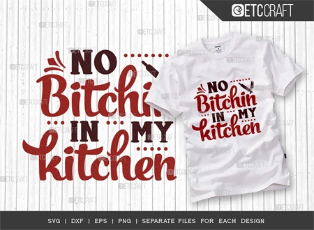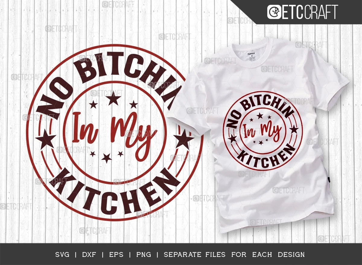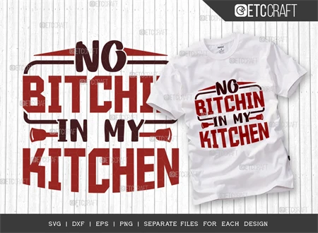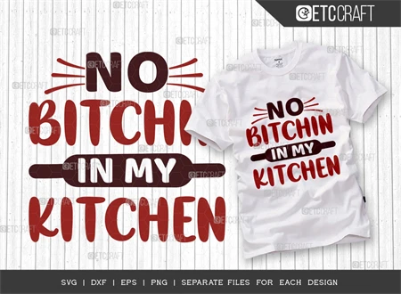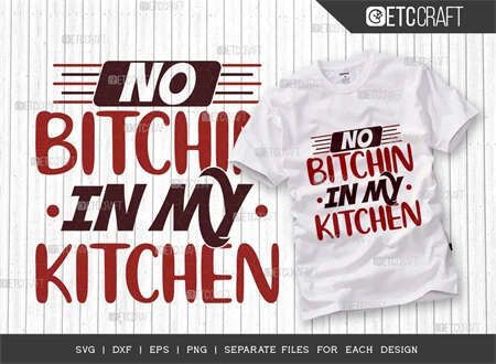 Enhance your kitchen swagger and showcase your sassy side with our trendy and humorous "No Bitchin In My Kitchen SVG Bundle" T-shirt design. Crafted with creativity and a touch of attitude, this bundle is perfect for those who want to add a dash of personality to their kitchen attire. Here are some compelling reasons to make this design yours: