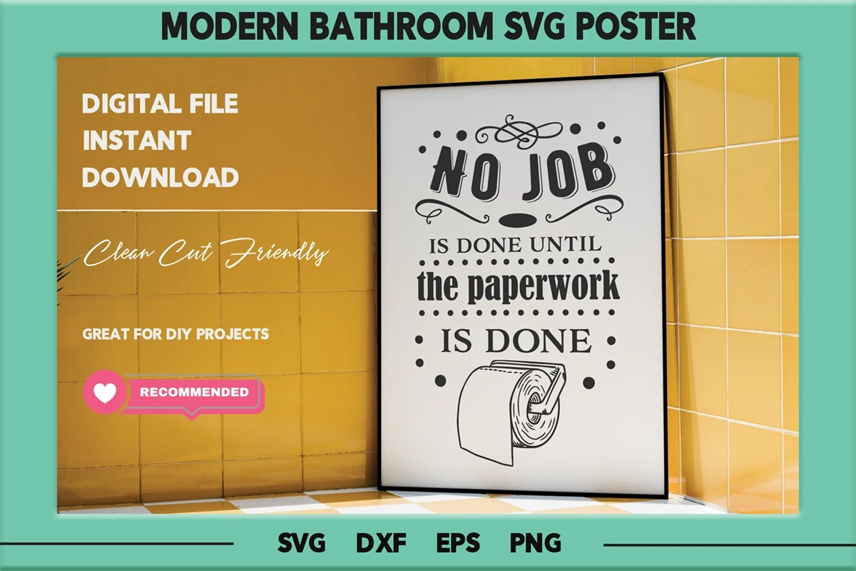 The main objective when creating this bathroom sign has been to have a cute wall art poster for you to decorate your home. You can use this cut file as a printable, wood sign, canvas, and poster. You can also print it as a vinyl decal and stick it straight to your bathroom wall.