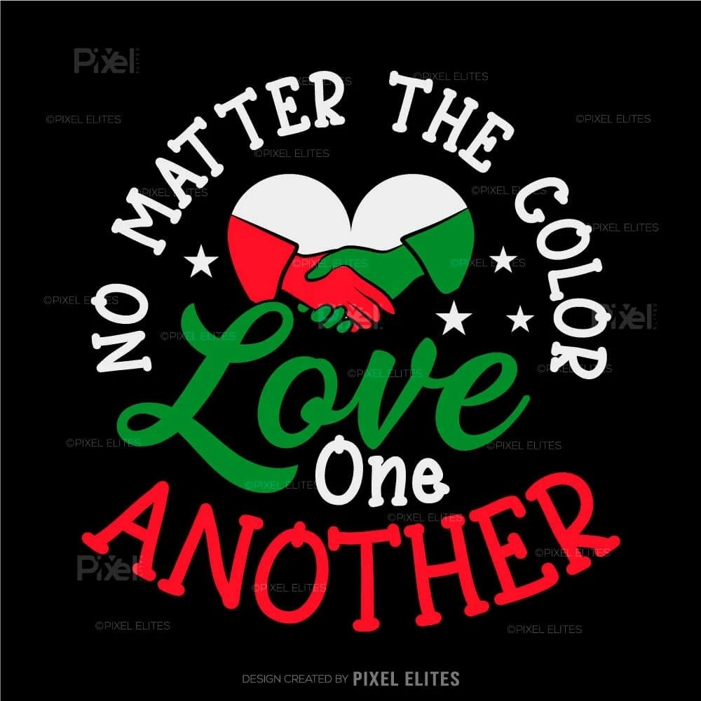 Spread a message of unity, love, and acceptance with the No Matter the Color - Love One Another SVG Cut Files Beautiful Queen design. This heartfelt and inspiring graphic celebrates diversity and promotes harmony across all skin tones. Perfect for custom t-shirts, mugs, posters, and more, this design empowers you to express love and solidarity through your creative projects.