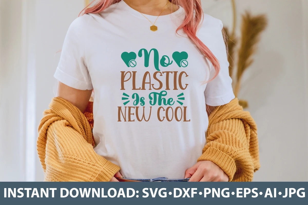No Plastic Is The New Cool SVG Bundle Design, Earth Day SVG