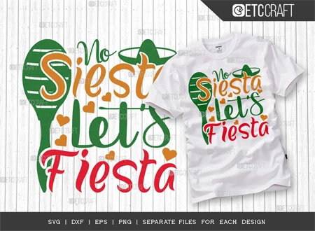 The "No Siesta Let's Fiesta" design is perfect for creating stunning t-shirts and other apparel items. Whether you're attending a lively celebration, organizing a fiesta-themed event, or simply want to showcase your love for fiestas, this design will make you stand out from the crowd.