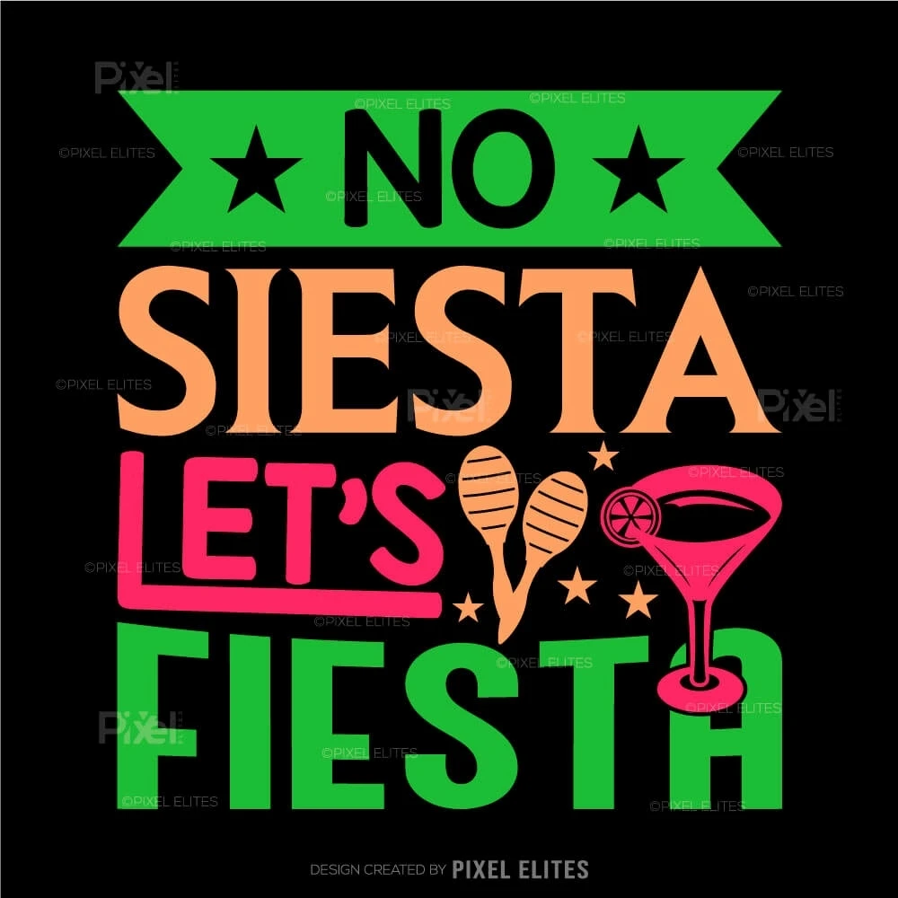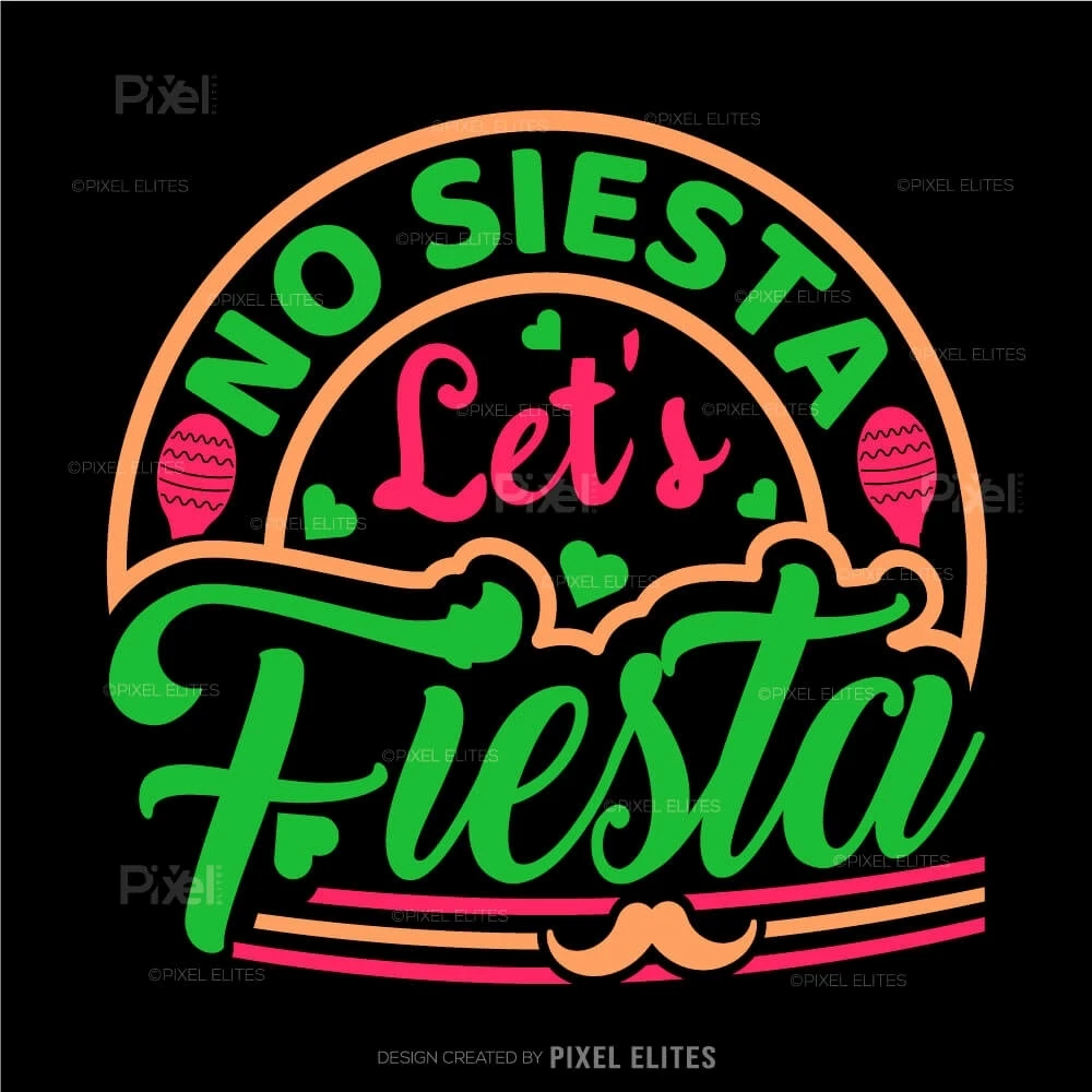 Get ready to party with our No Siesta Let's Fiesta SVG design! Perfect for celebrating Cinco de Mayo, this vibrant and energetic design is ideal for anyone who loves to embrace the festive spirit. Whether you're crafting T-shirts, banners, or fun decorations, this SVG file will add excitement and flair to your fiesta celebrations.