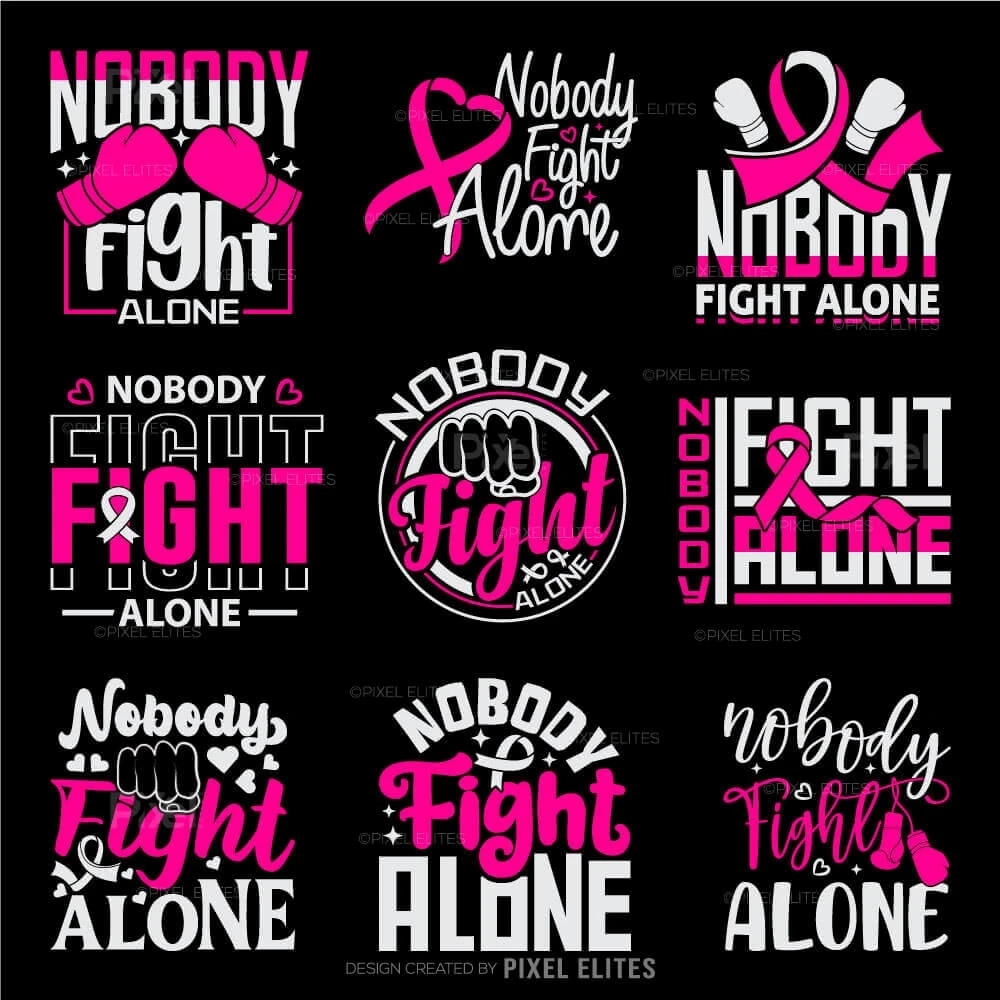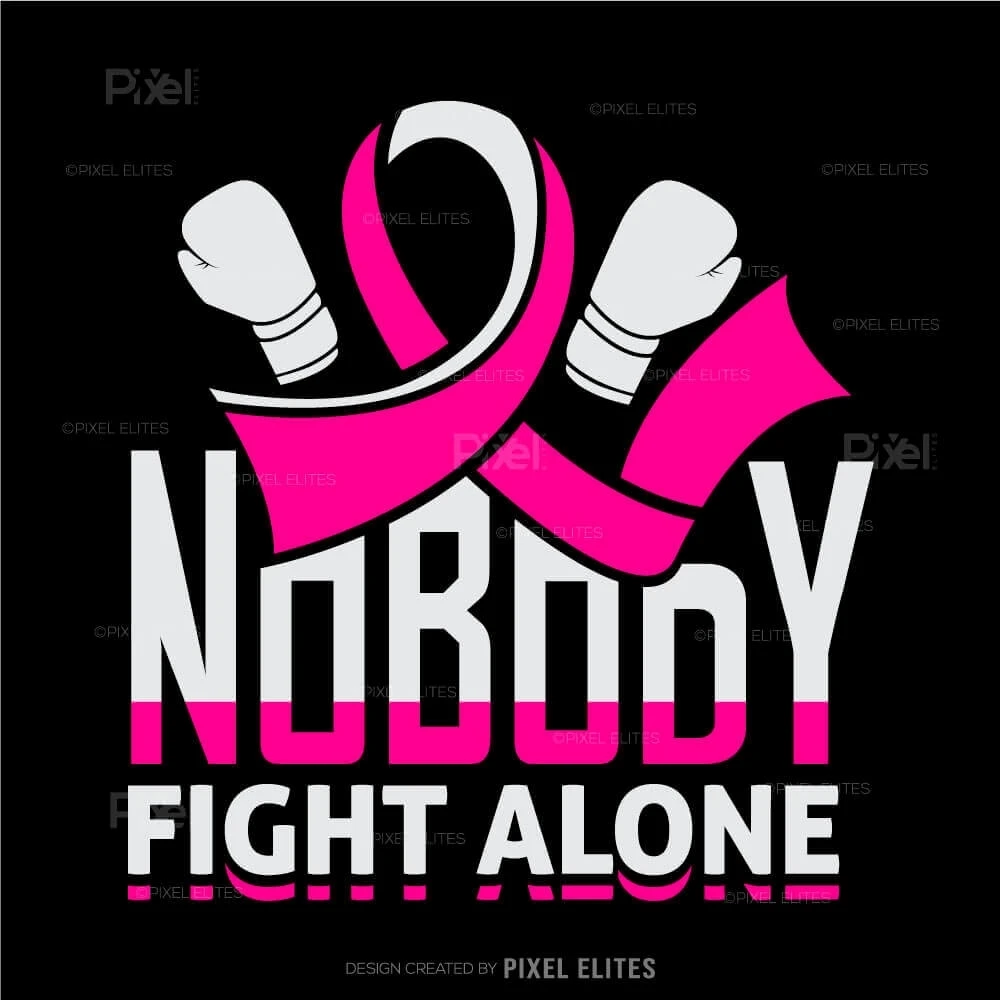Nobody Fights Alone SVG Cut Files for T-Shirt Design Pink Ribbon & Cancer Survivor Vinyl Decals for Cricut Fight Breast Cancer