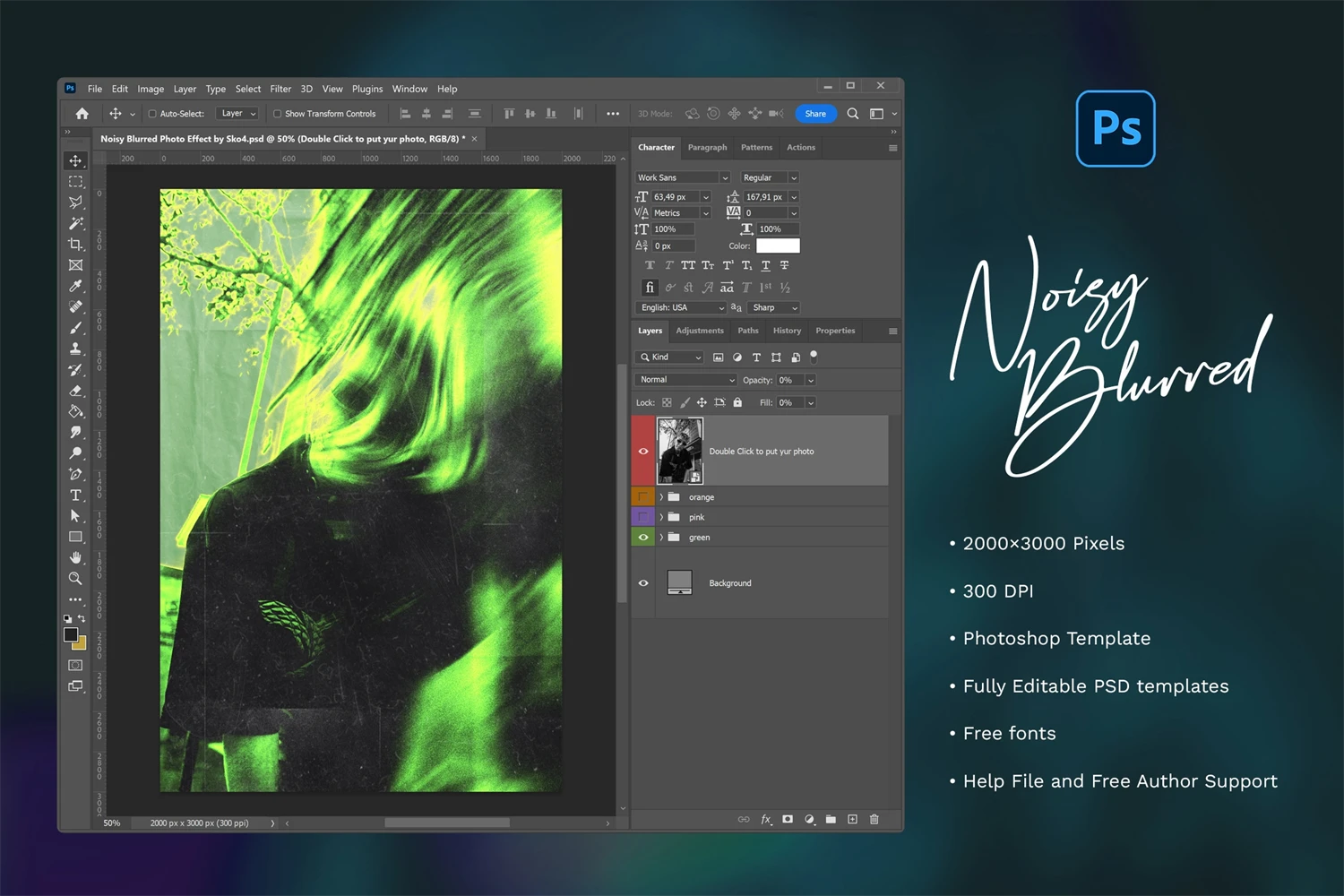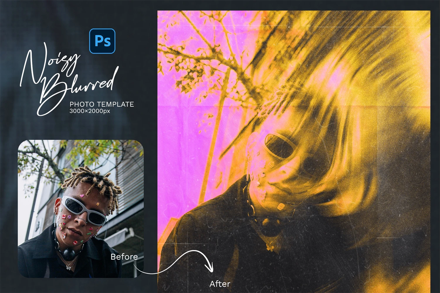 The "Noisy Blurred Photo Template" is a stylish and versatile PSD template designed for creating stunning posters and advertisements. With a resolution of 2000x3000 pixels in portrait mode, this template is ideal for high-quality prints and digital designs.