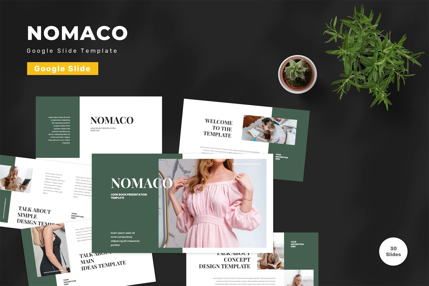 Get it now! **Nomaco - Google Slide Template** for All Business and Personal Needs All elements on this template are editable; input your content, replace your image with a placeholder, change the color, and all presentations include an animated slide to present your slides.