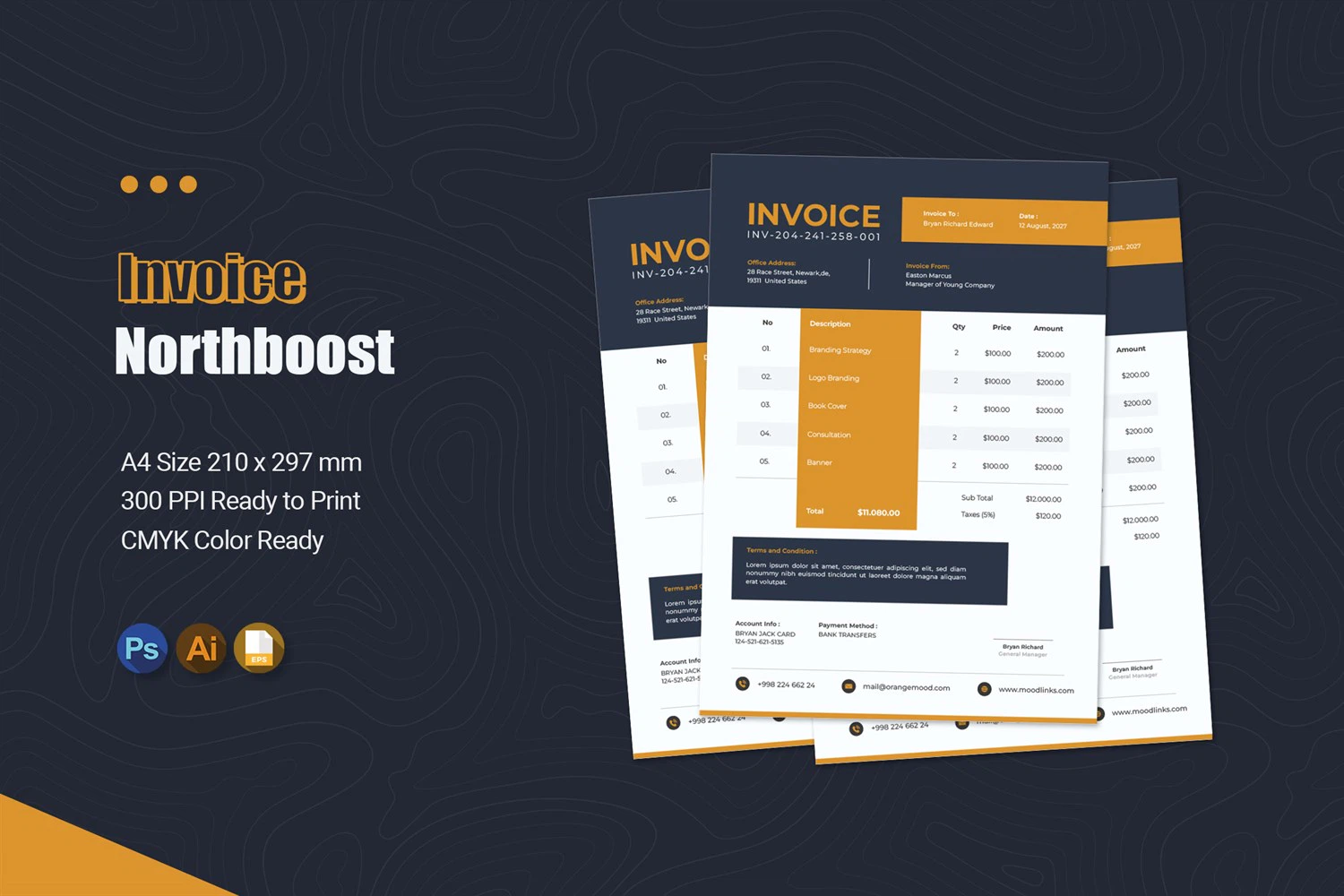 Use our invoices to make your bookkeeping easier and to impress your clients with an invoice display that has a modern, elegant design and strong typography. This invoice template is easy to use and customizable, making it perfect for any medium.