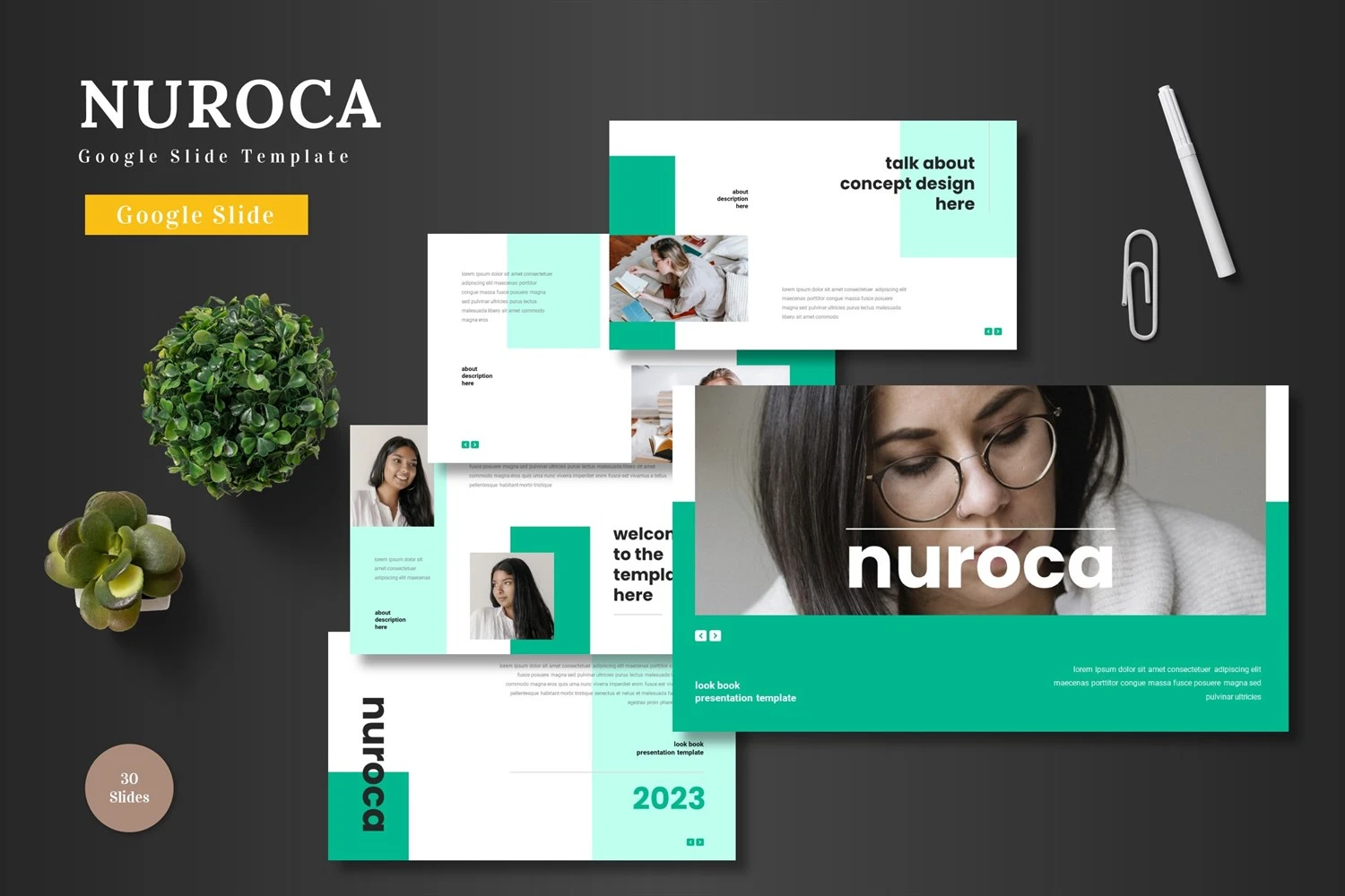 This is **Nuroca - Google Slide Template** - Get it now! Google Slides is a great template ready to use. Clean, scalable, colorful, and multipurpose. Suitable for Business, Pitch Deck, E-commerce, or Product promotion purposes.