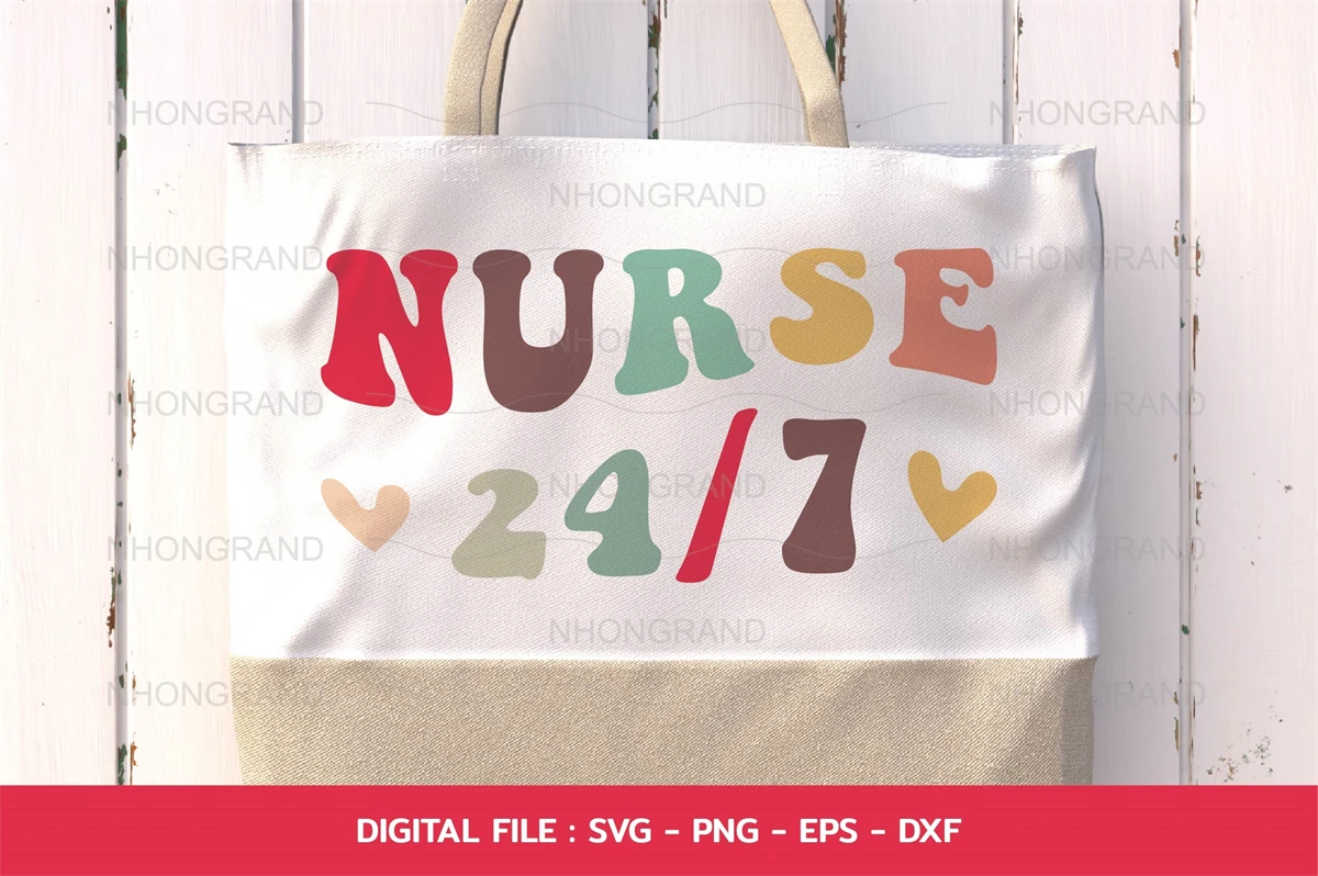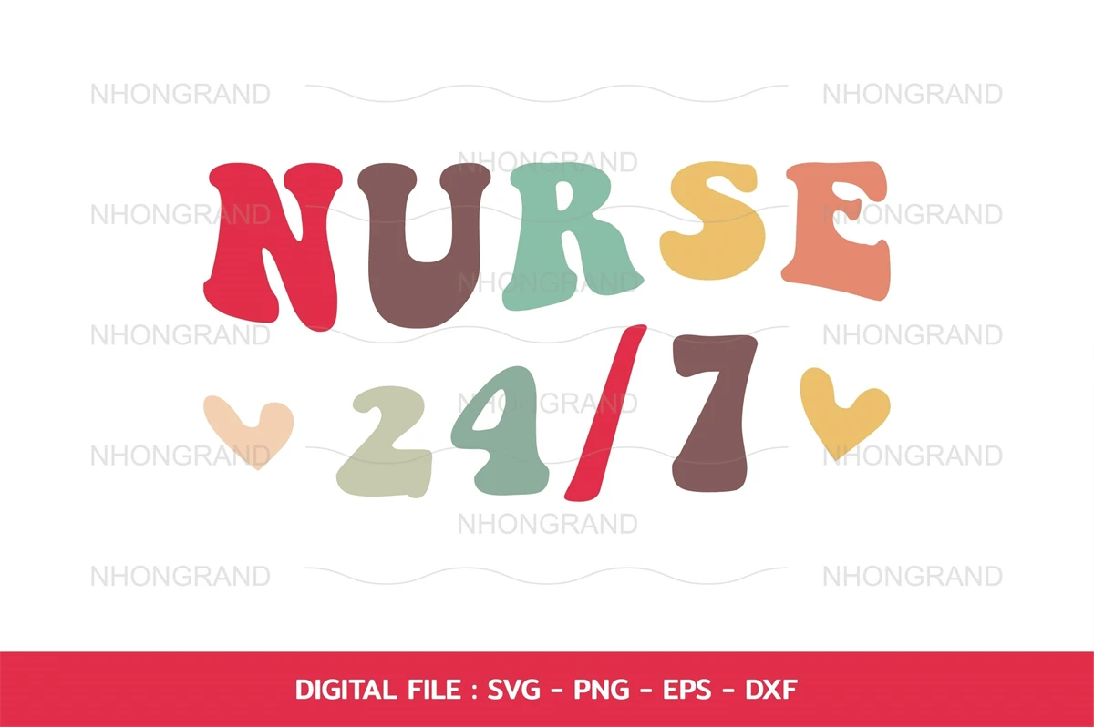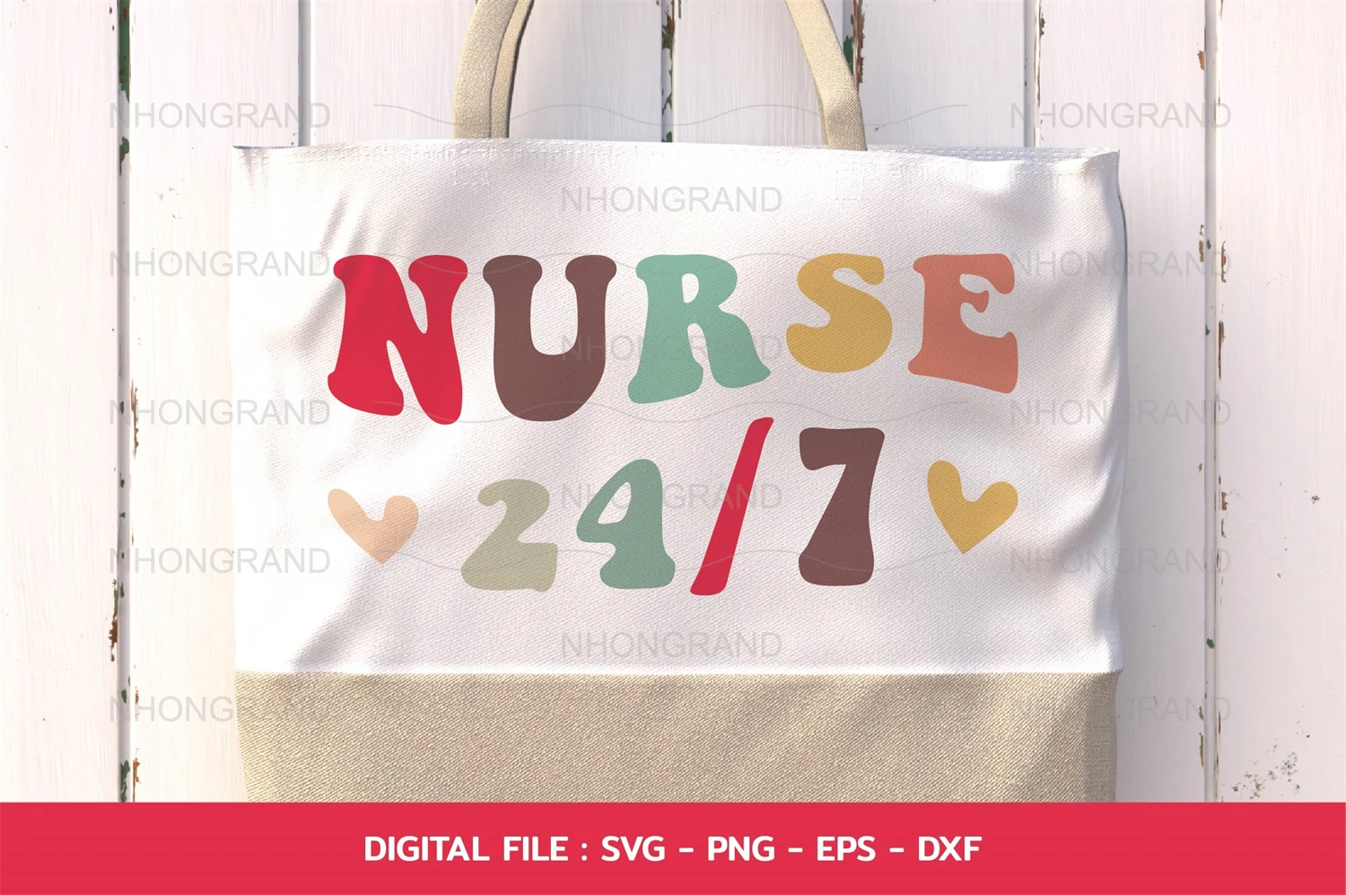 nurse 24/7 nurses work hard cute retro groovy wavy, t-shirt, Cricut Files, svg, png, eps, dxf, Instant Download