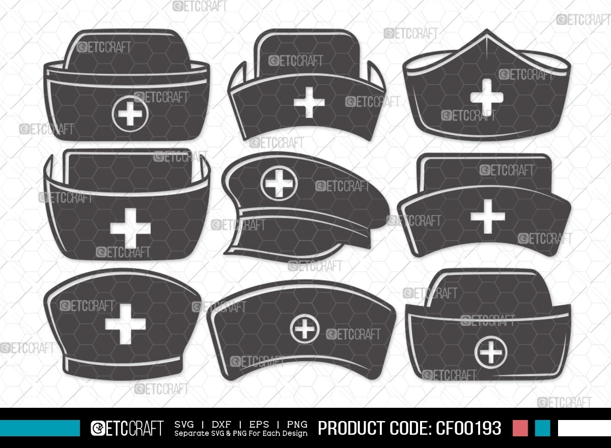 Discover the Nurse Hat Silhouette SVG Cut File Bundle, a comprehensive collection of nurse hat silhouettes ideal for medical-themed projects and creative crafts. Elevate your designs with these easily customizable nurse hat silhouettes.