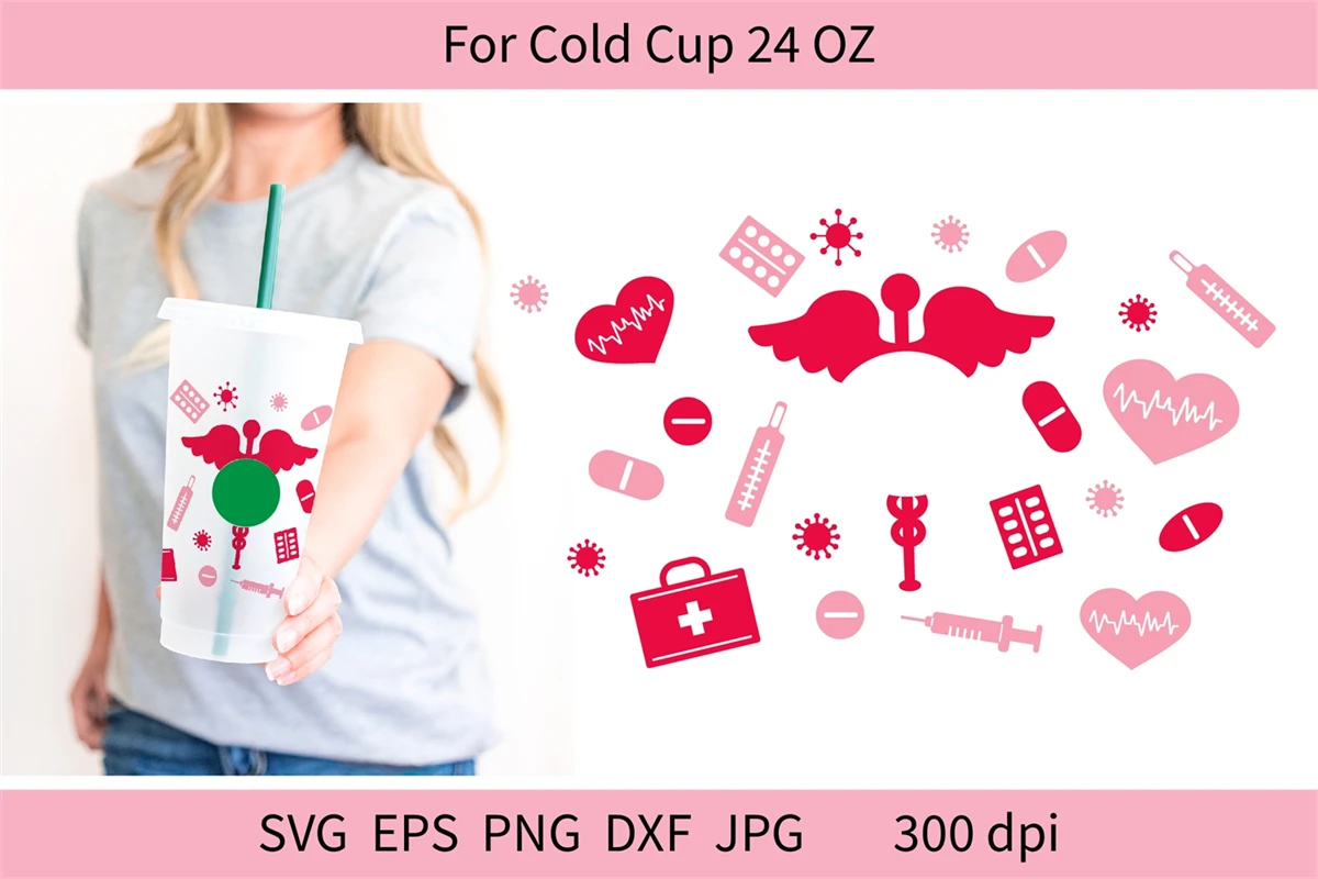 Cold Cup Wrap SVG, 24 OZ, Nursing Tumbler, Valentines Day Nurse, Valentines Nurse SVG, Valentines Nurse, Cold Cup SVG, Starbucks Cold Cup Wrap, Starbucks Cup, Starbucks SVG, Starbucks Cold Cup, Cold Cup Tumbler