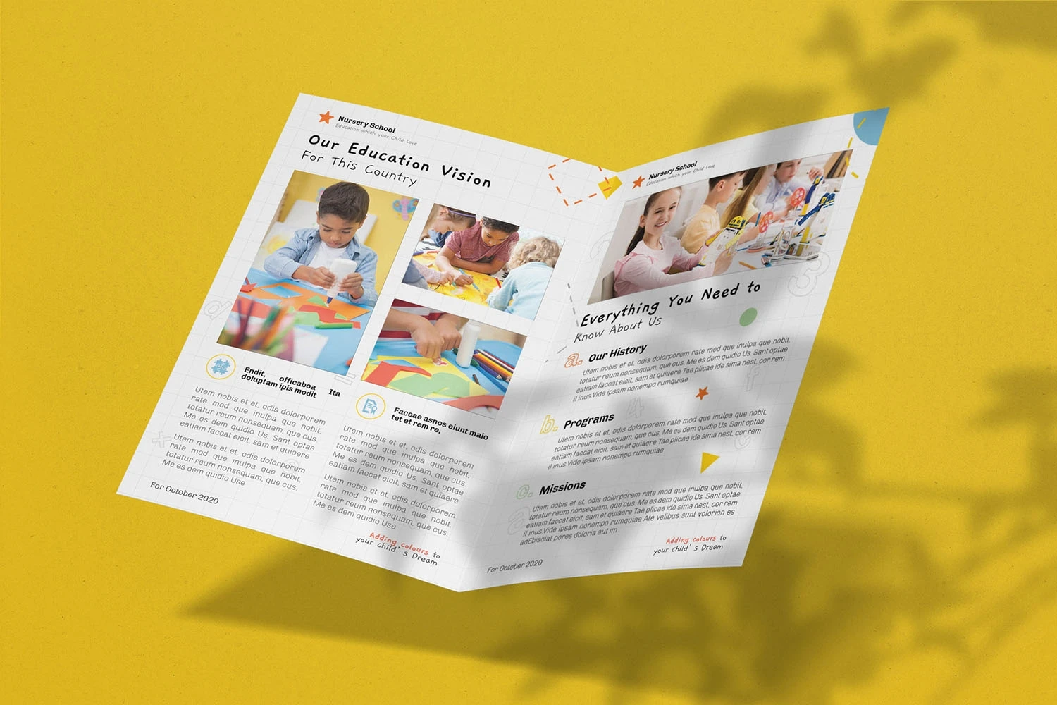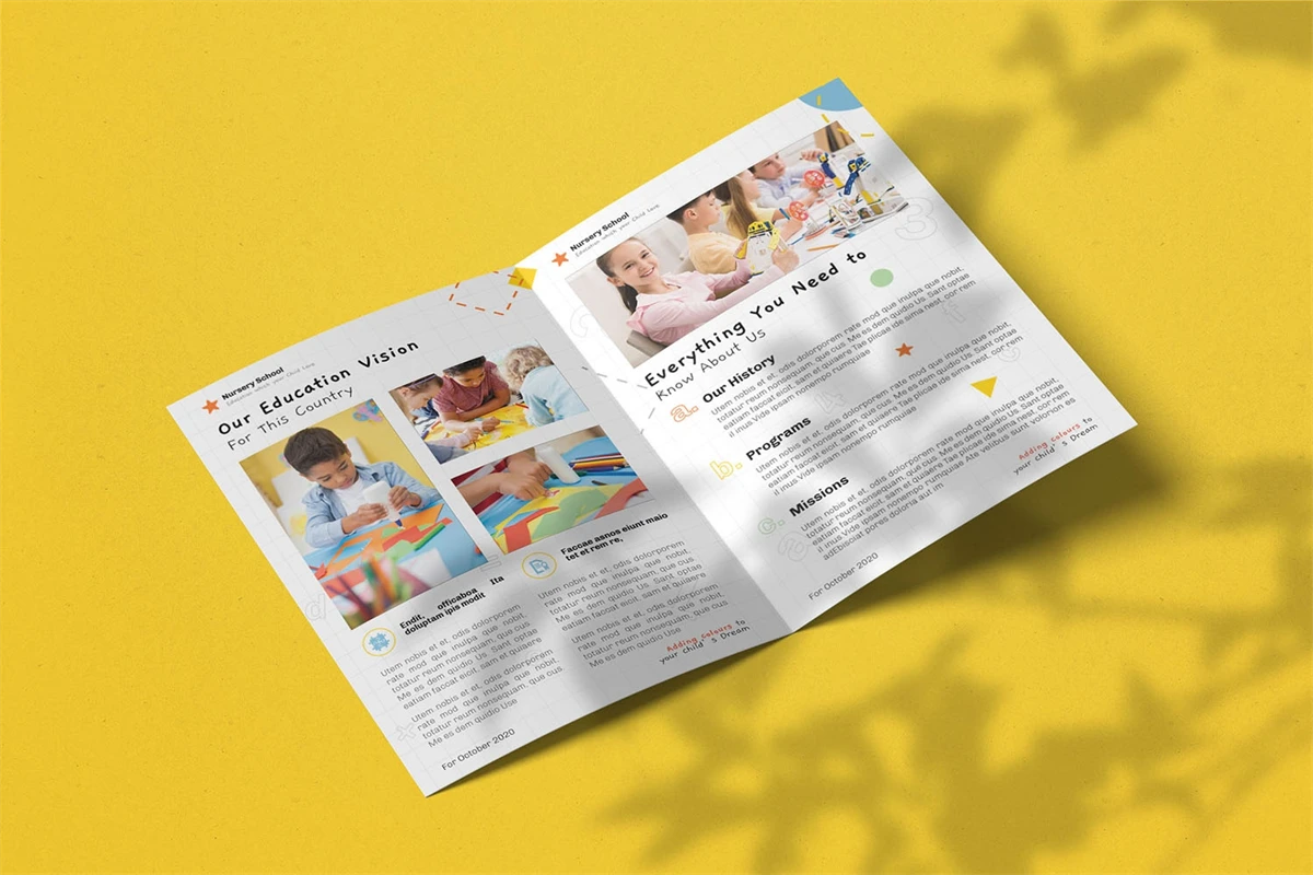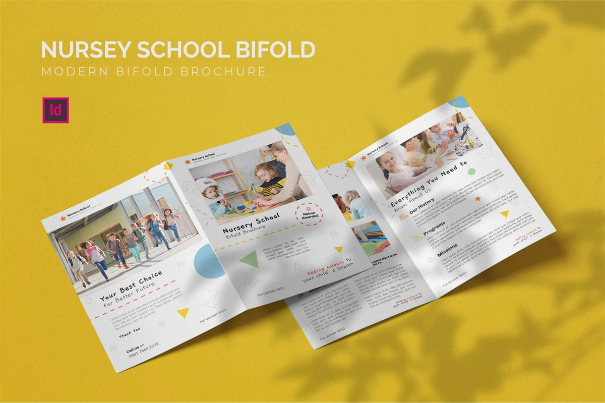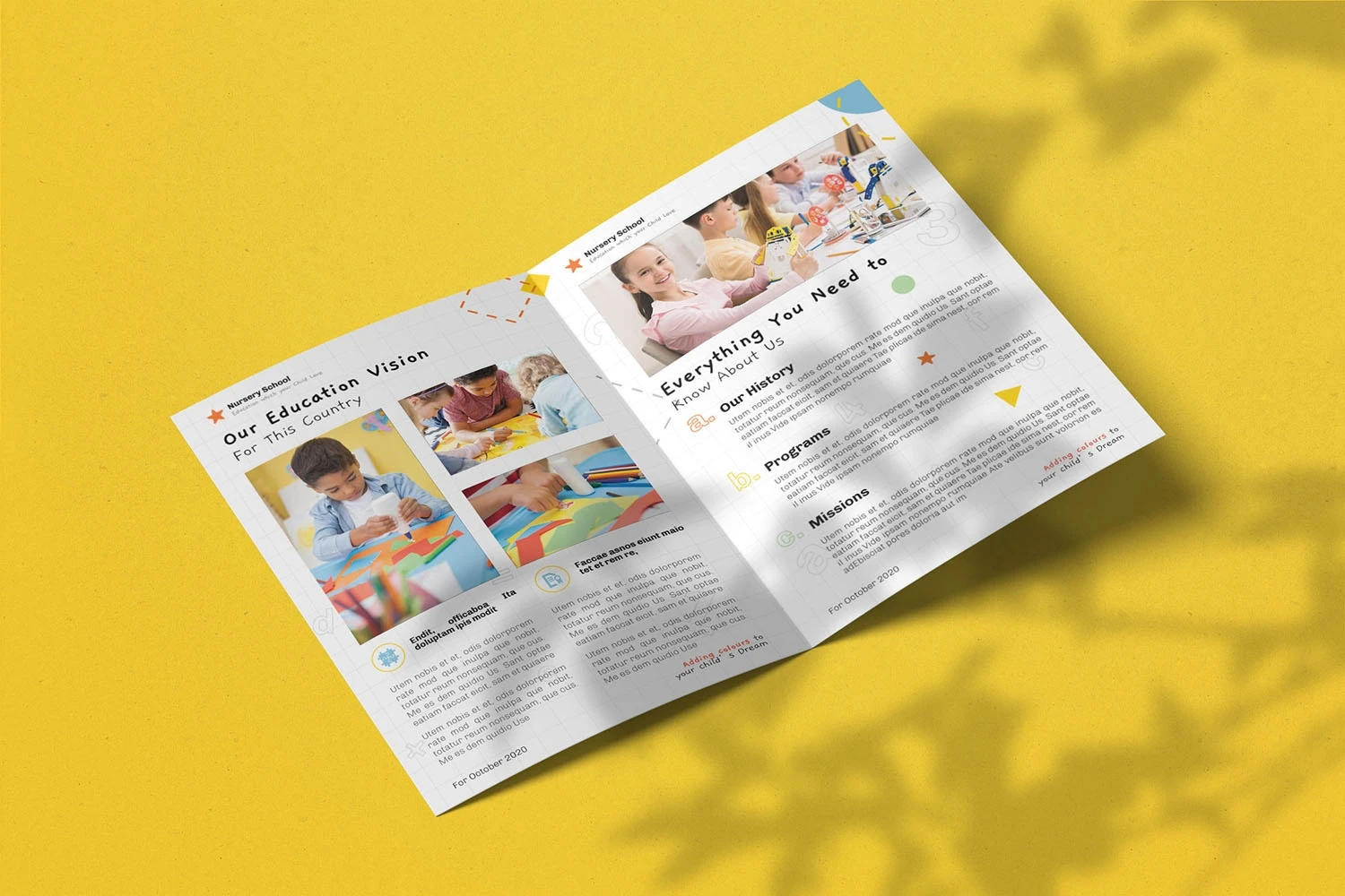 Nursery School - Bifold Brochure We present this Bifold Brochure for you, simple and very elegant, and this Bifold Brochure is suitable for all types of your business, made with adobe inDesign, very easy to customize, Hope you Like it, dont forget to rate, Thanks.