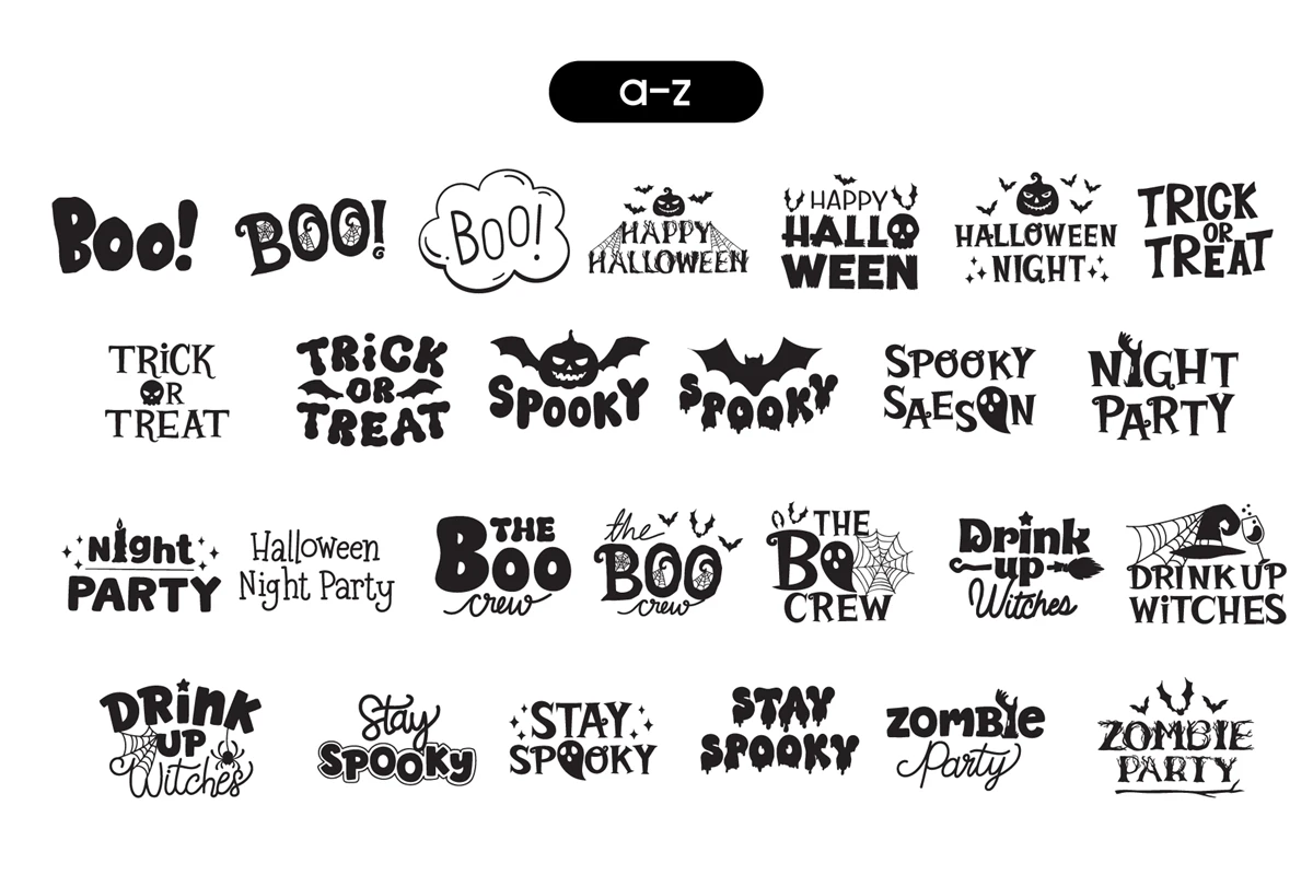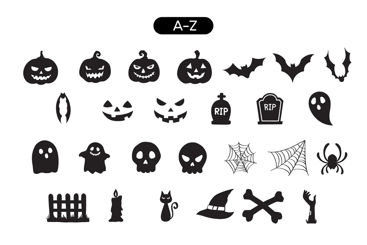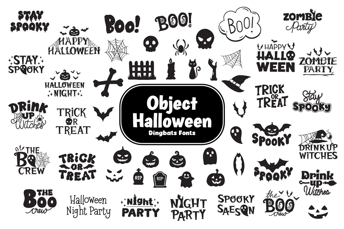 Object Halloween Fonts is a Dingbats typeface designed for ease of use, all you have to do is select a-z or A-Z and you'll get a ready-to-use design. Suitable for those who want comfort no more struggling with complex design software or spending hours on intricate designs. Object Halloween Fonts makes crafting a fun and straightforward process.