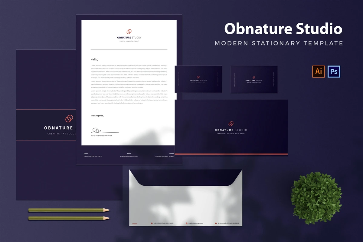 Obnature Studio - Stationary. This template is great for your business and this design will make your interested, elegant, and easily editable according to your needs. I hope you enjoy for this stationary.