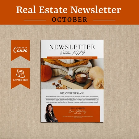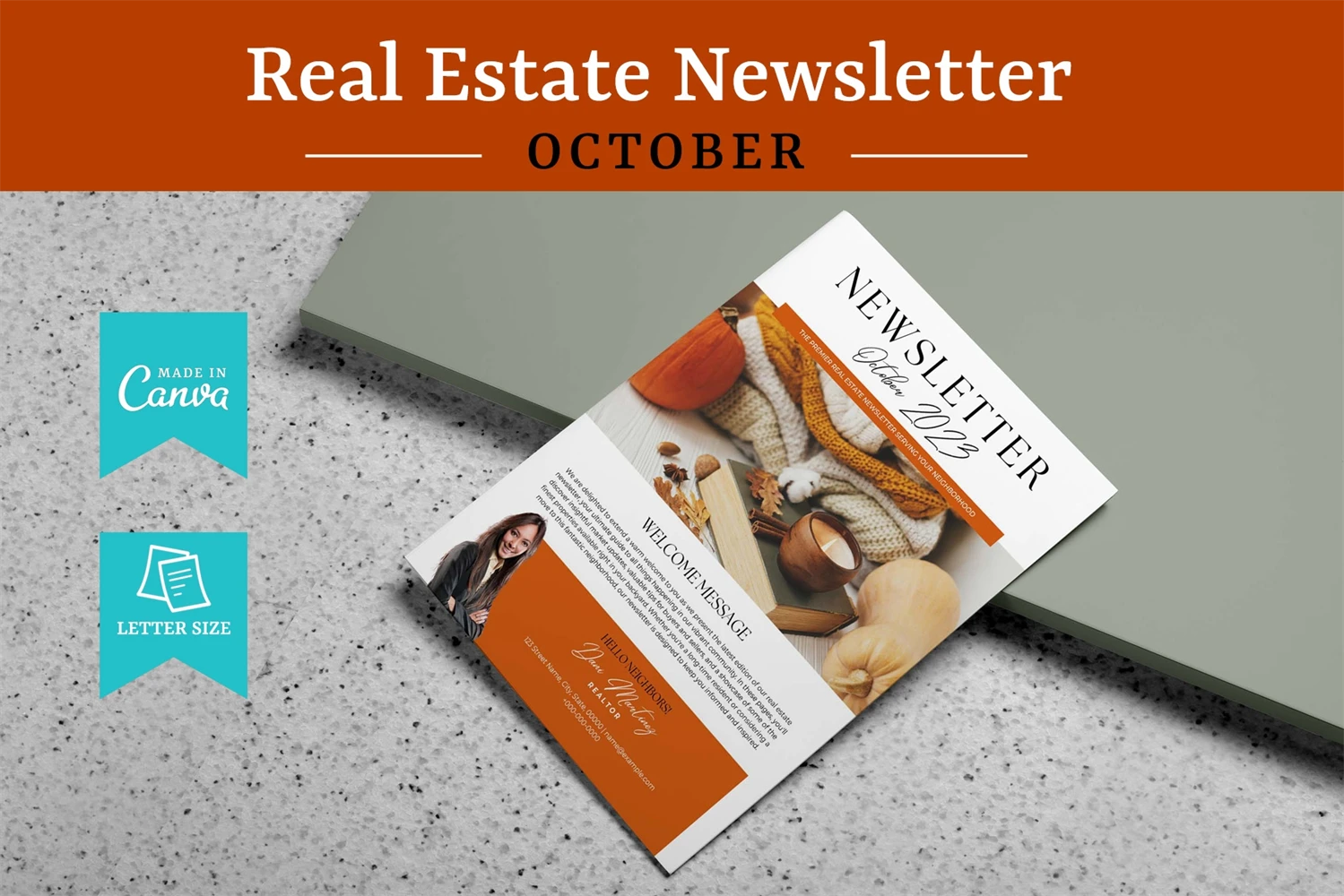 - 8.5x11 Inches Canva Real Estate Newsletter Template for October.