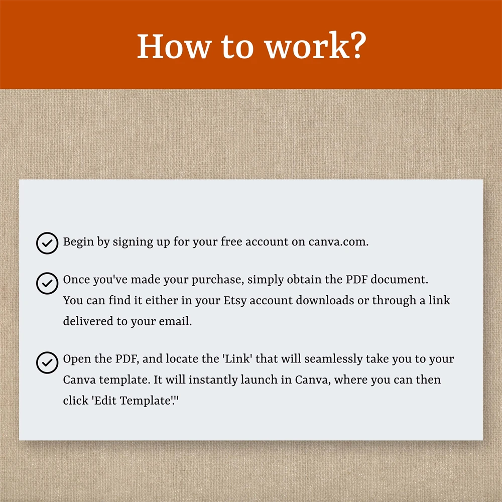 - After purchasing the listing, you will receive a pdf file with canva access link.