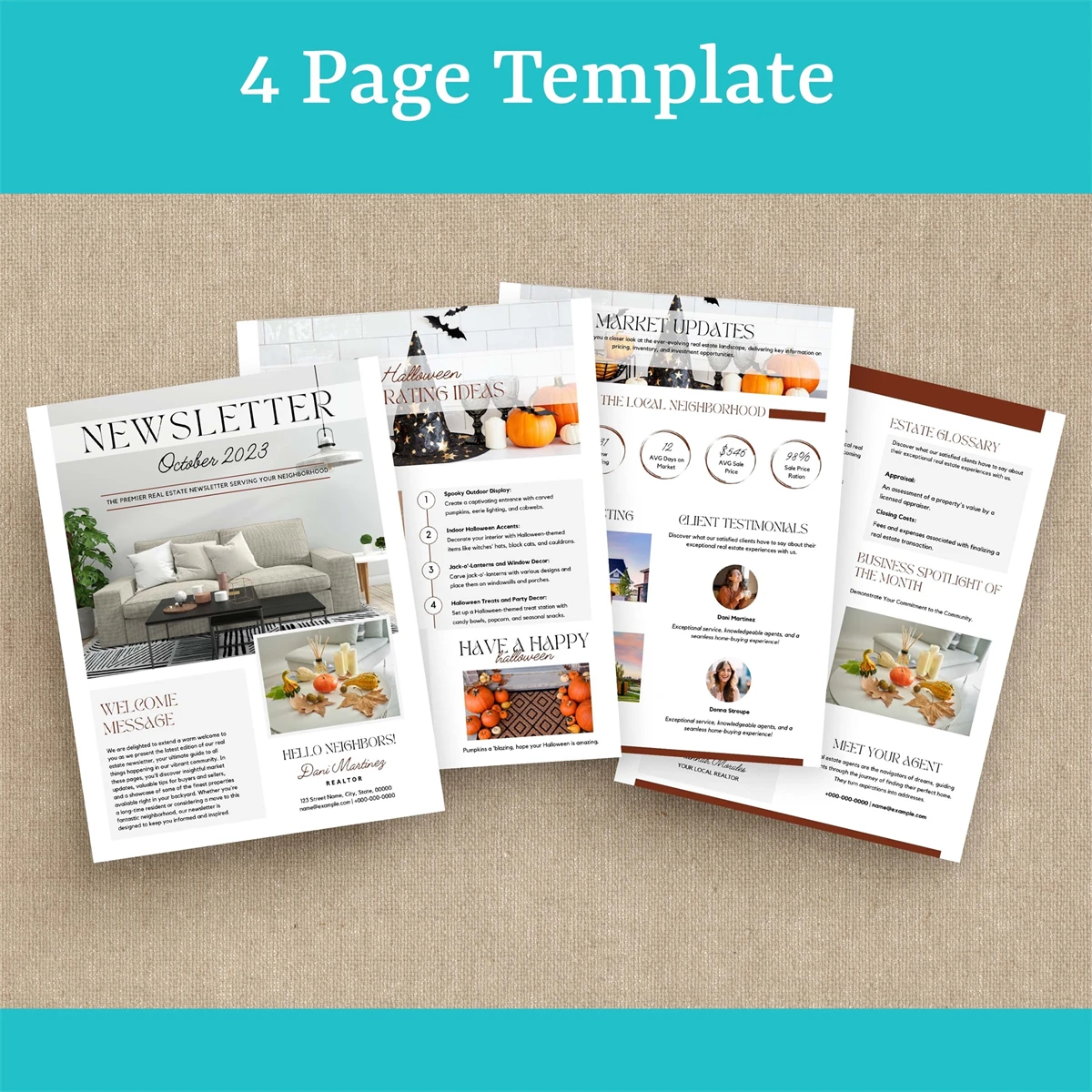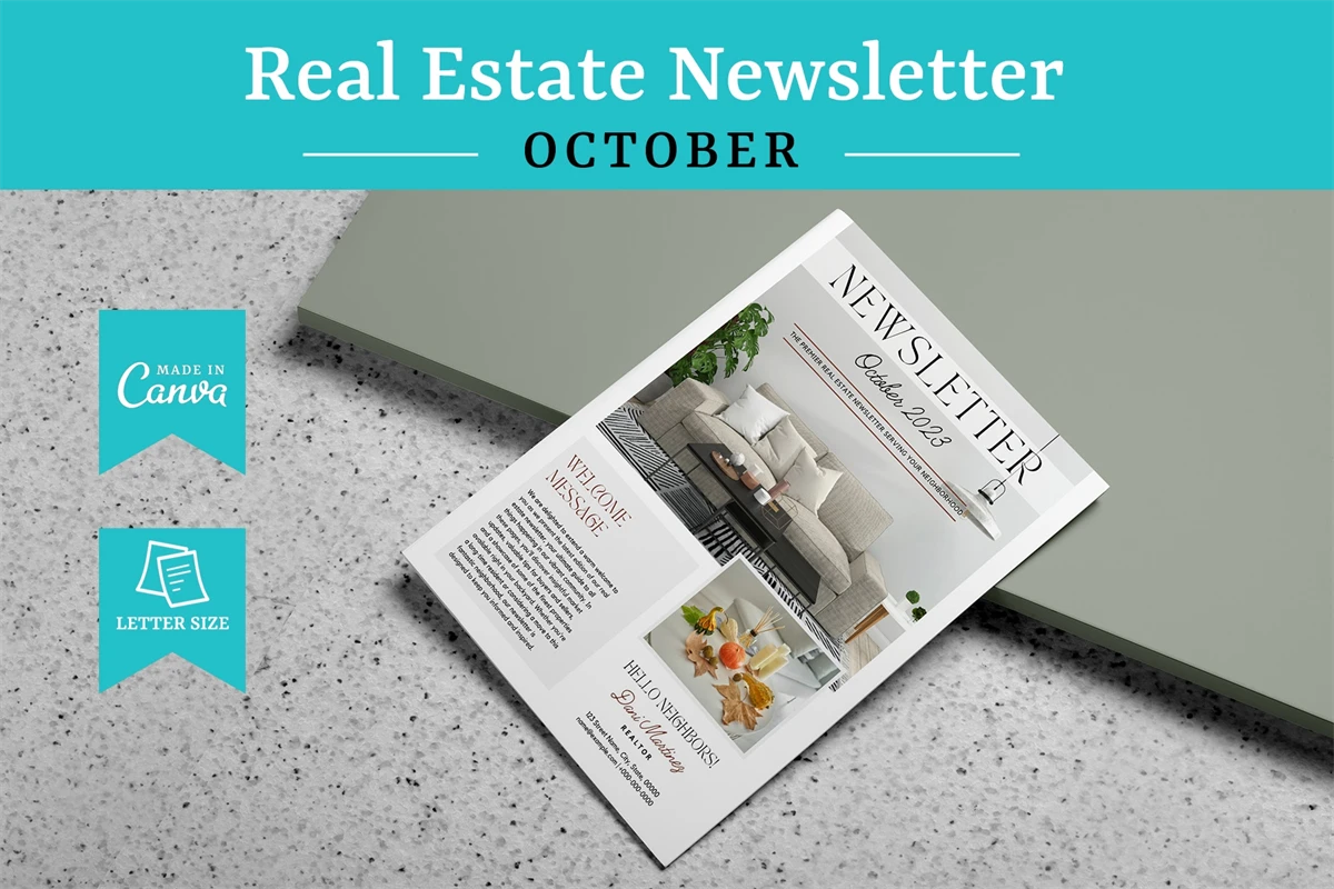 - 8.5x11 Inches Canva Real Estate Newsletter Template for October.