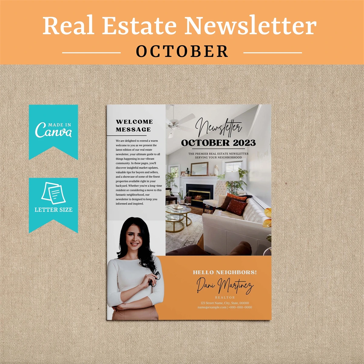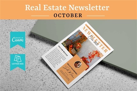 - 8.5x11 Inches Canva Real Estate Newsletter Template for October.