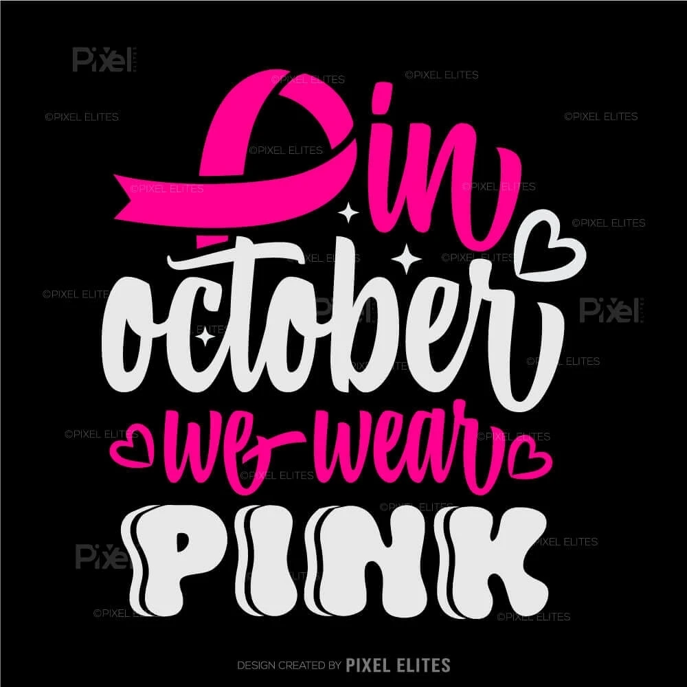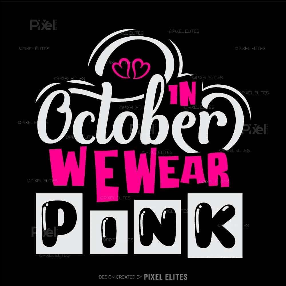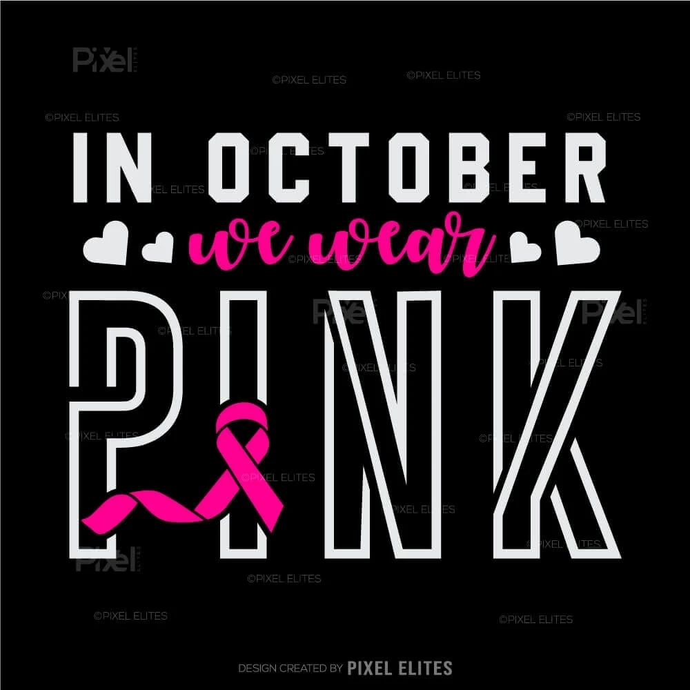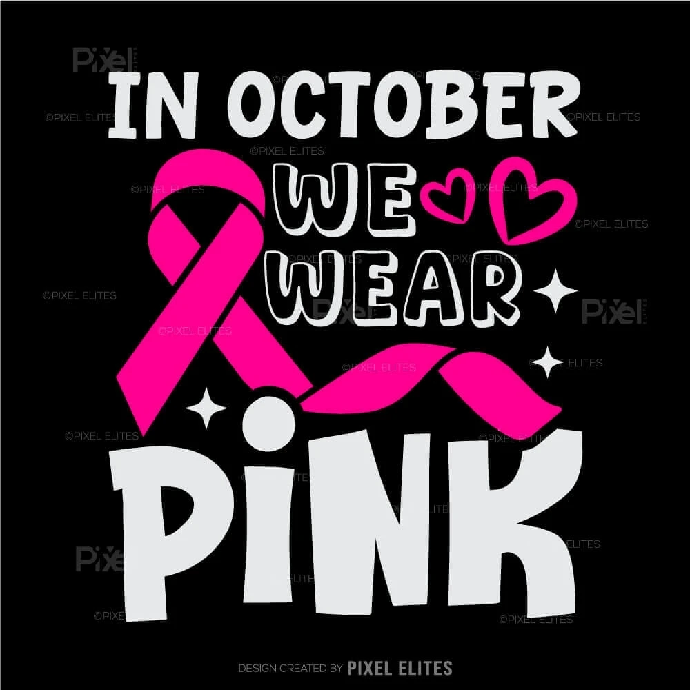 October We Wear Pink SVG Cut Files - T-Shirt Design for Breast Cancer Awareness, Fight Cancer