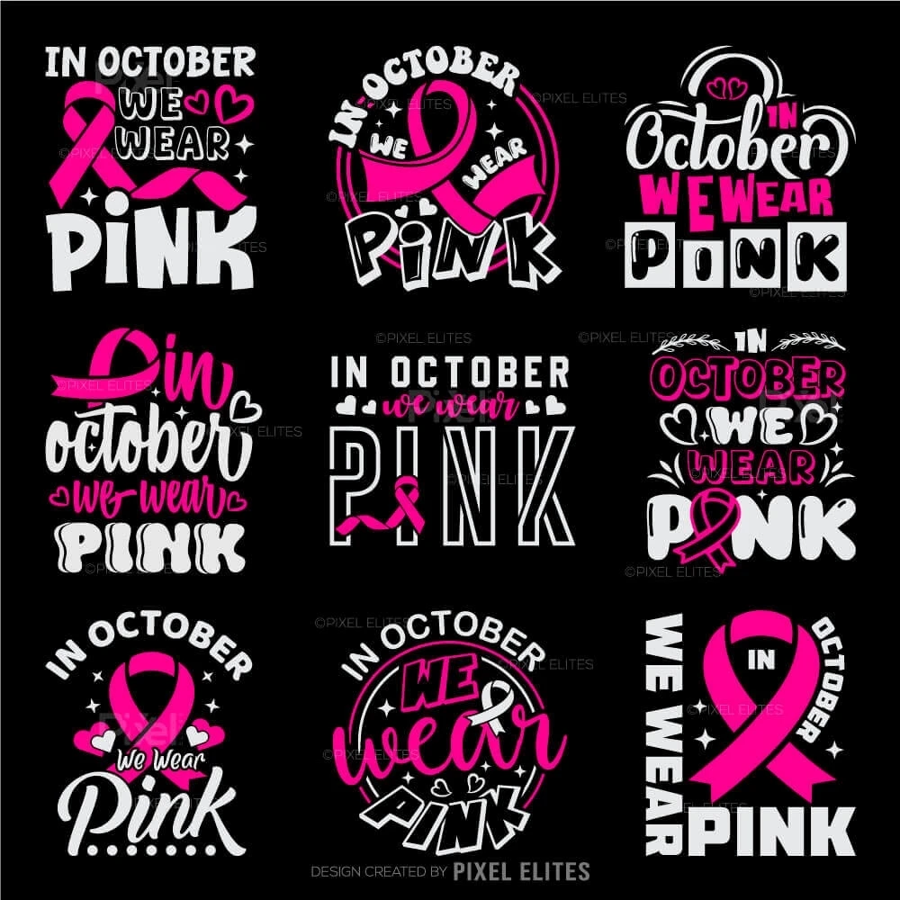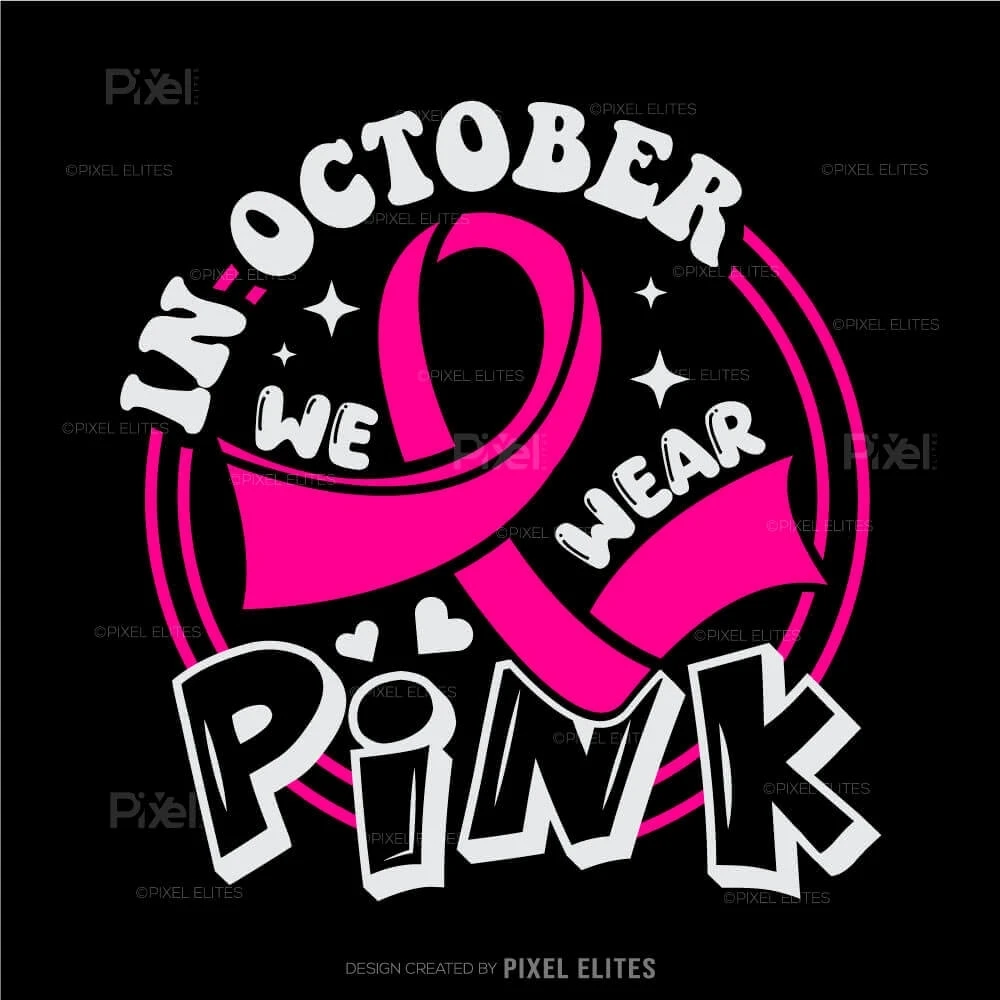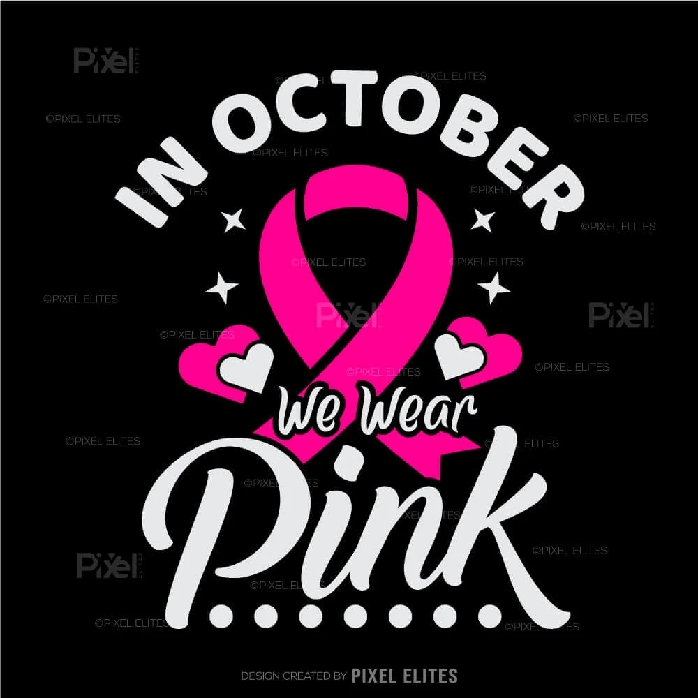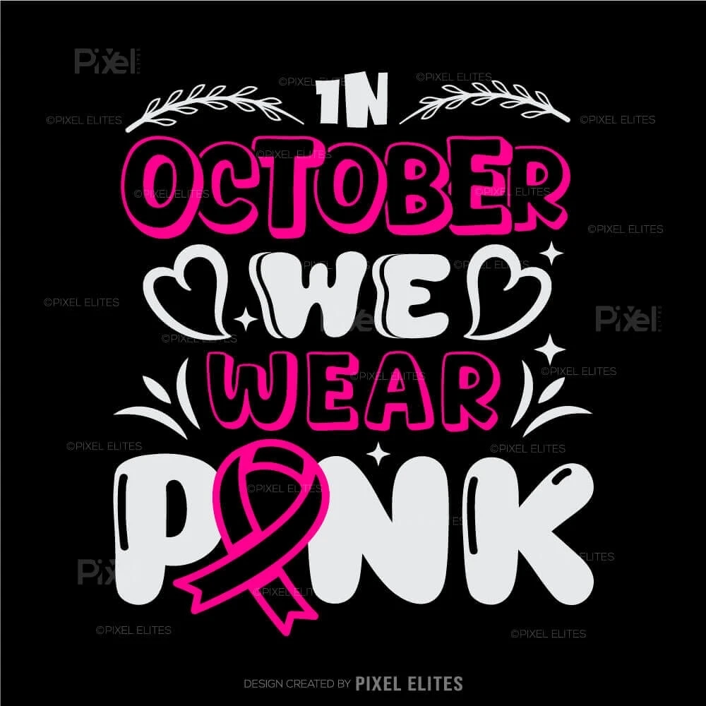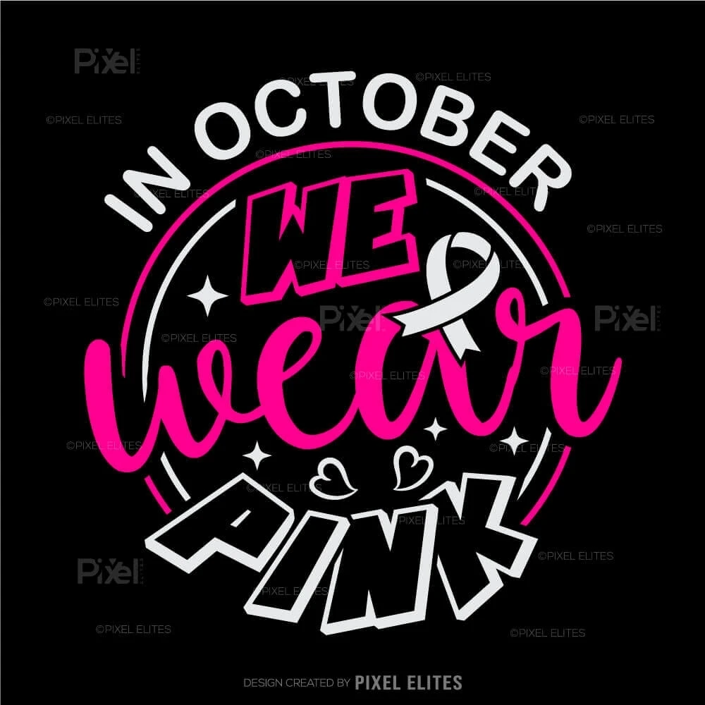 October We Wear Pink SVG Cut Files - T-Shirt Design for Breast Cancer Awareness, Fight Cancer