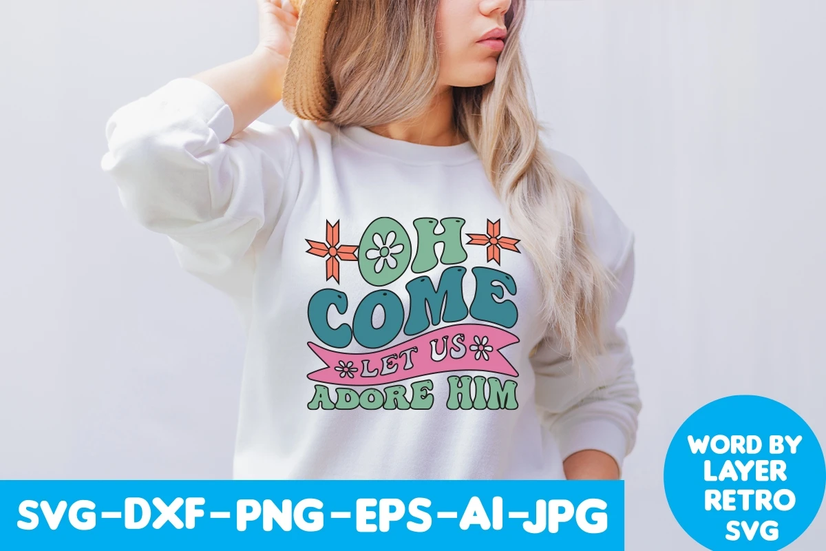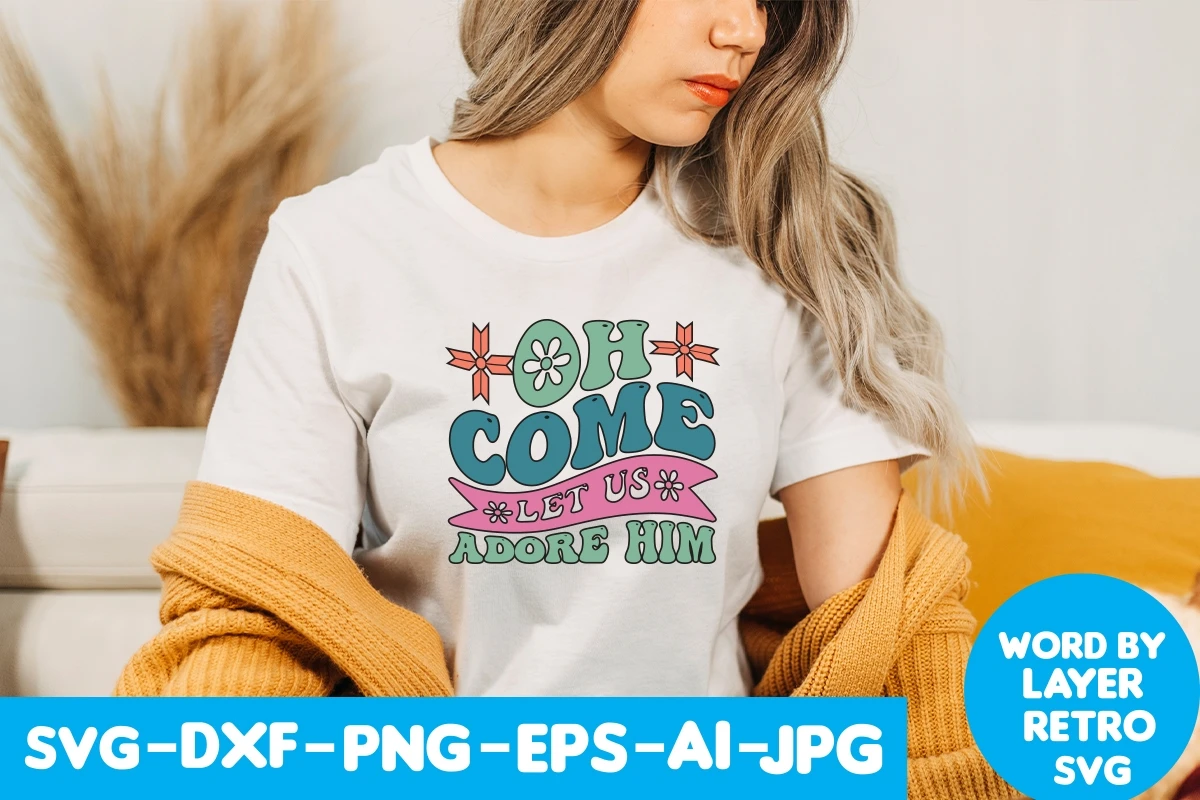 OH COME LET US ADORE HIM Retro SVG Design