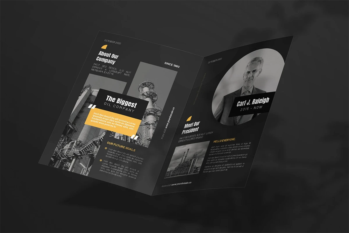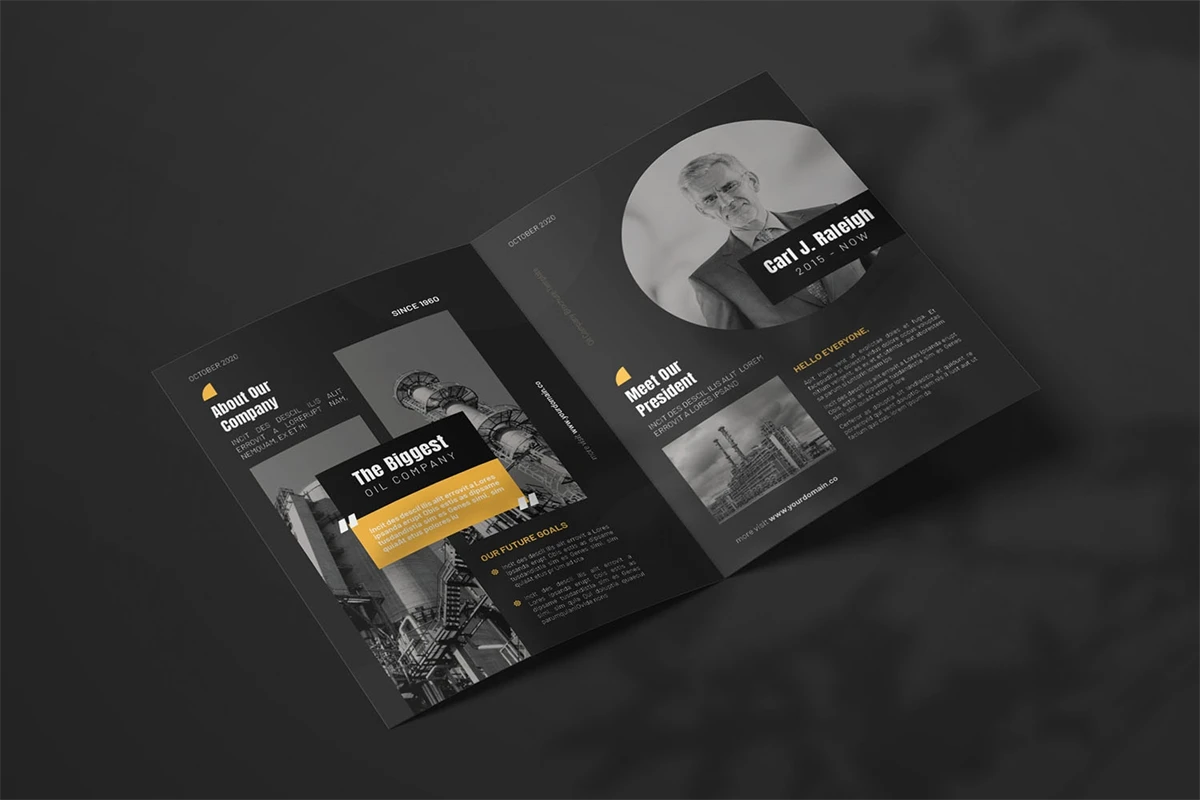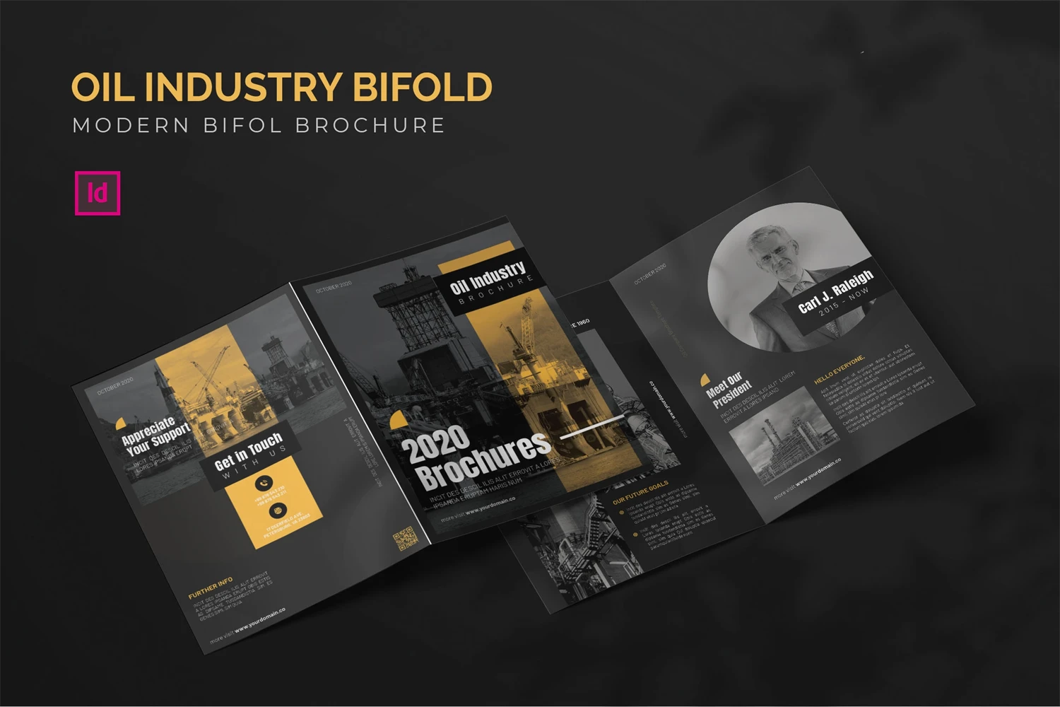 Oil Industry - Bifold Brochure We present this Bifold Brochure for you, simple and very elegant, and this Bifold Brochure is suitable for all types of your business, made with adobe inDesign, very easy to customize, Hope you Like it, dont forget to rate, Thanks.