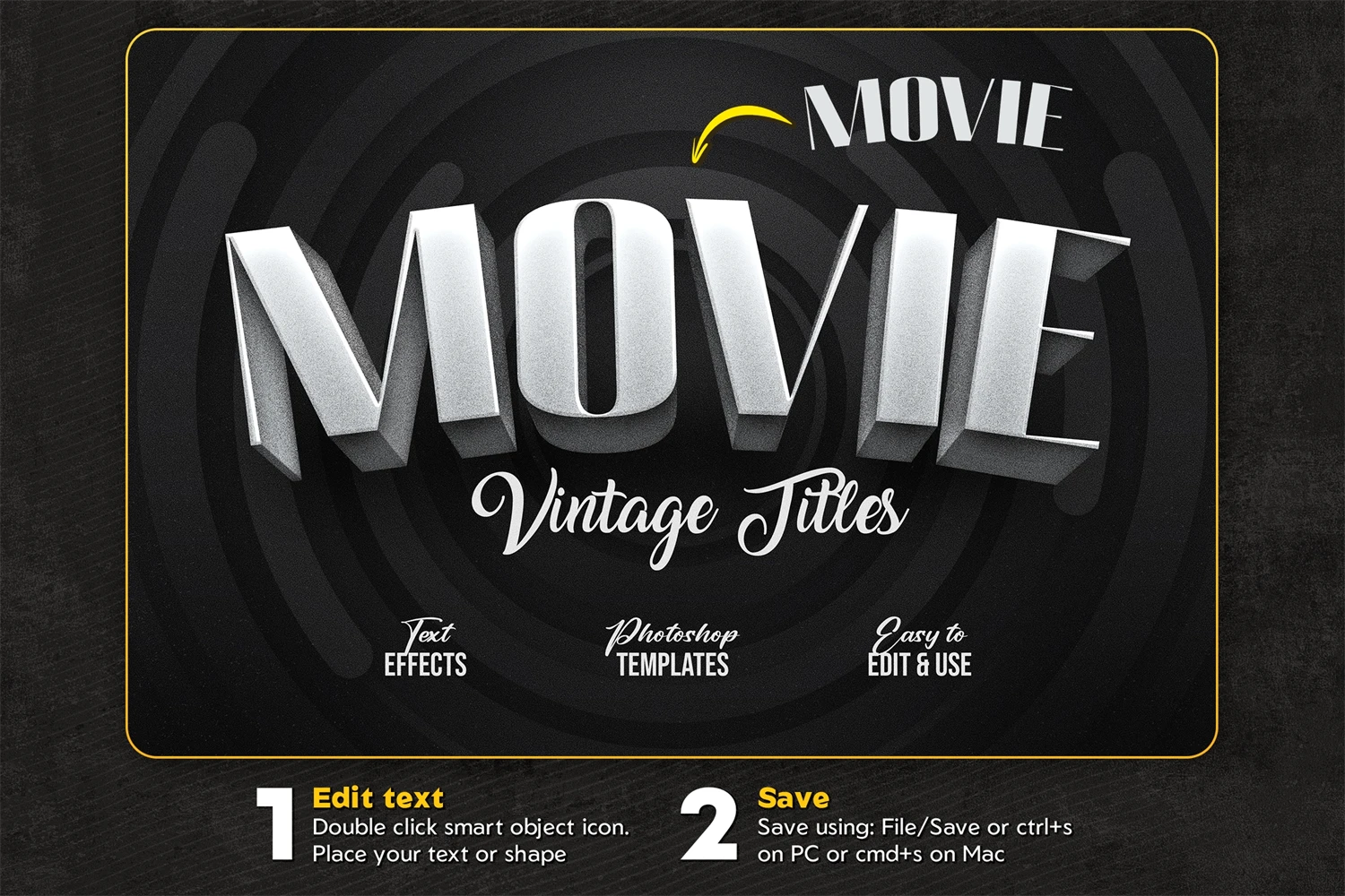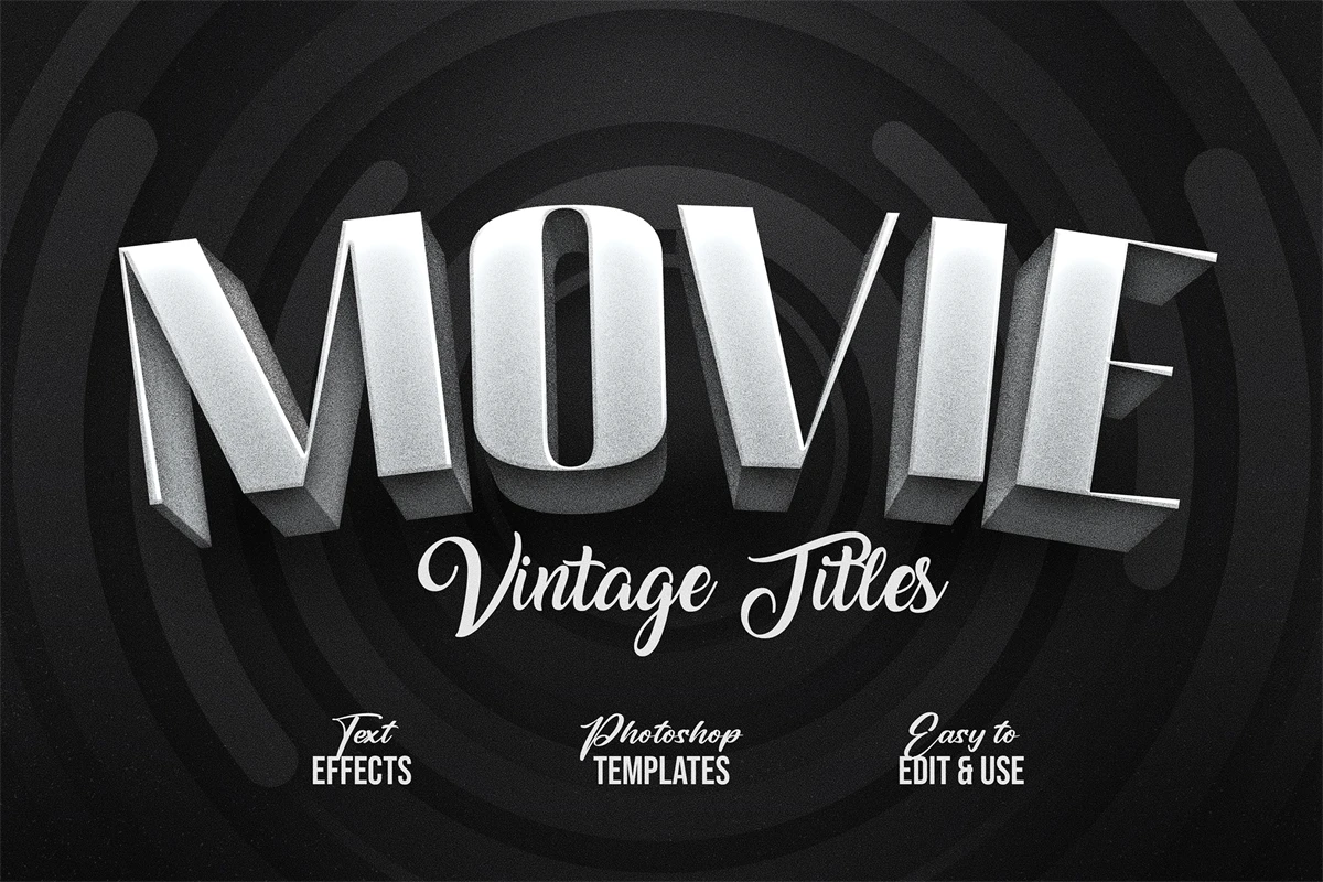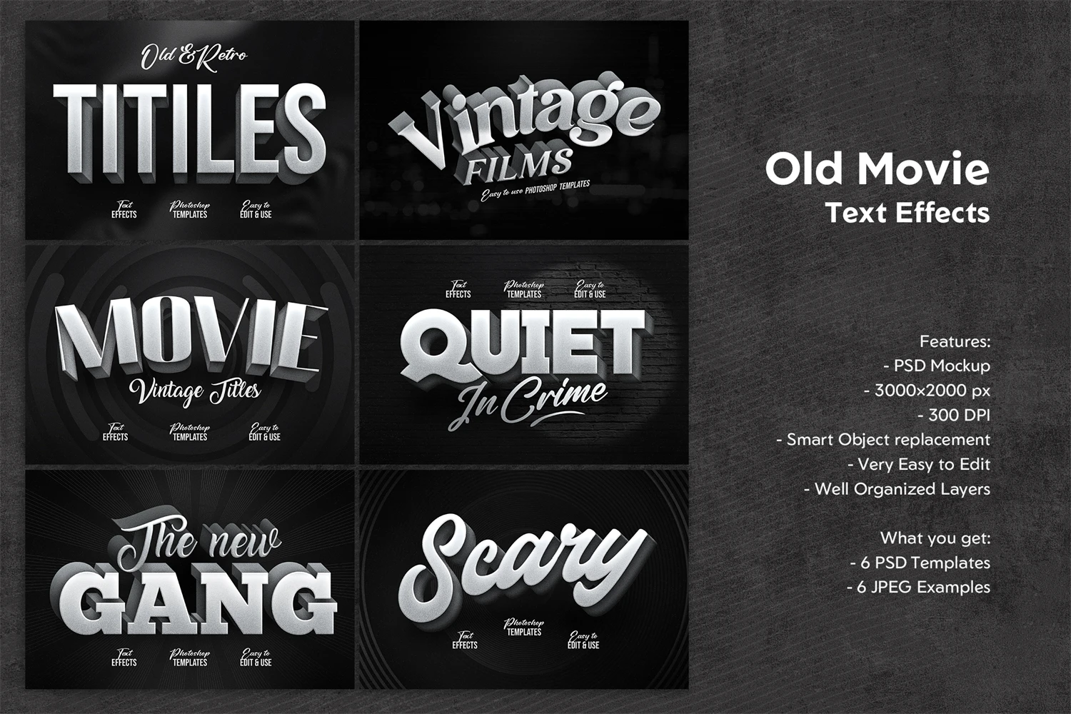 Old School Movie Text Effects look as authentic as possible with bold letters, monochrome colors, film grain overlays.