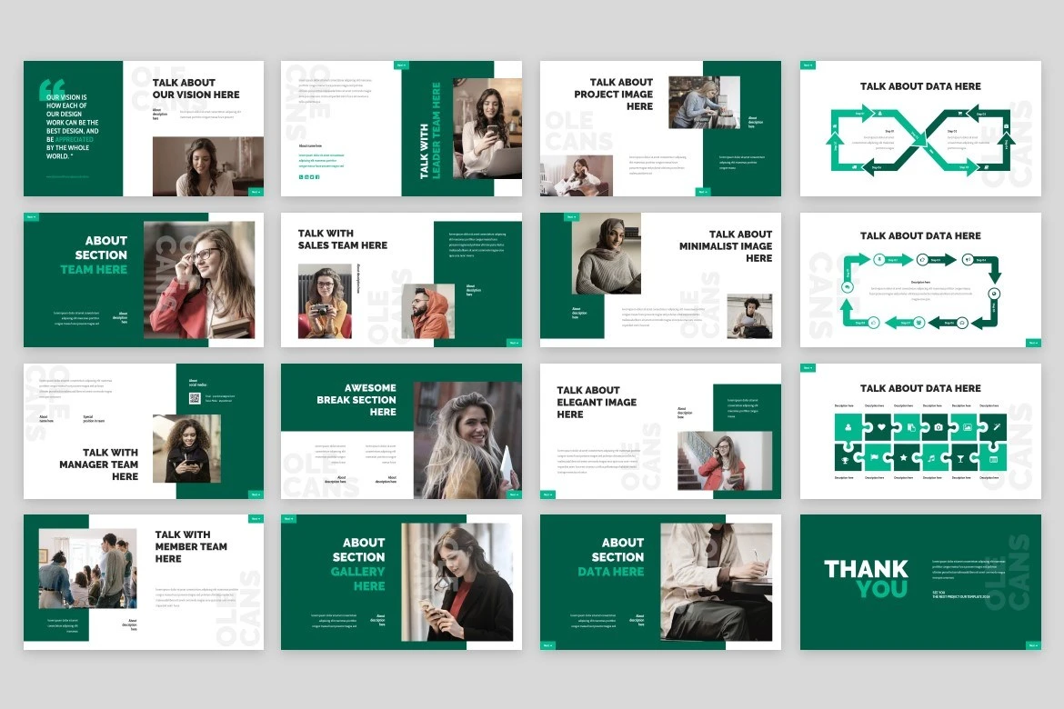 Get it now! **Olecans - Powerpoint Template** for All Business and Personal Needs All elements on this template are editable; input your content, replace your image with a placeholder, change the color, and all presentations include an animated slide to present your slides.