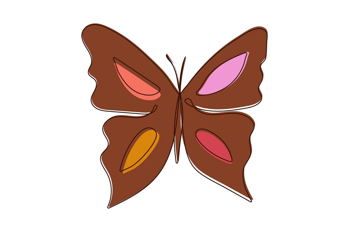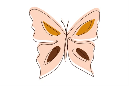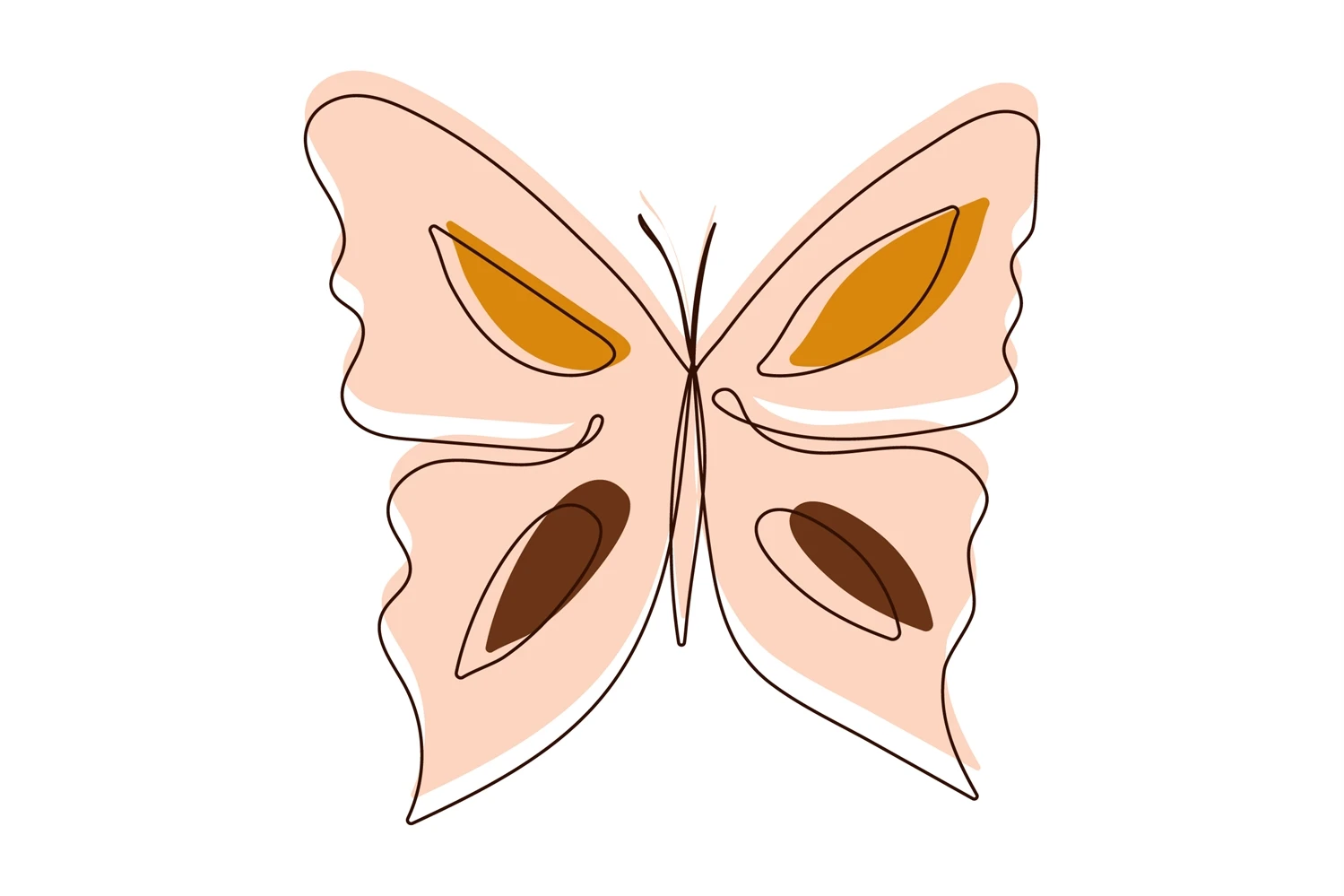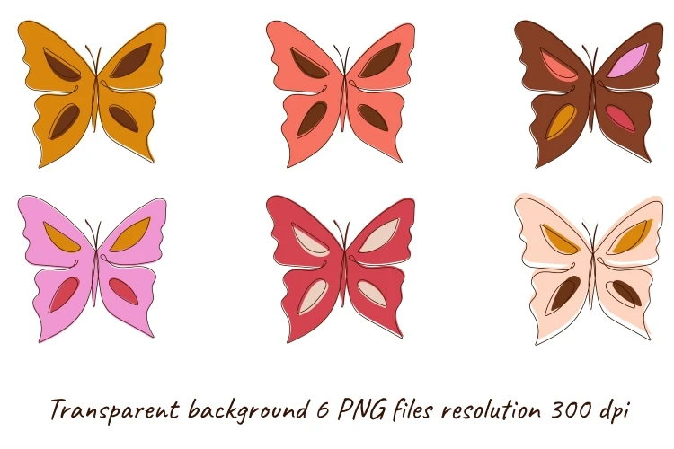 One line art.Butterflies in trendy retro style.Trendy retro 90s style.Vector illustration of y2k.Nostalgia for 1980s.2000s.Template for print.Set of vector butterflies.Clipart.Hand drawn butterflies vector illustration.