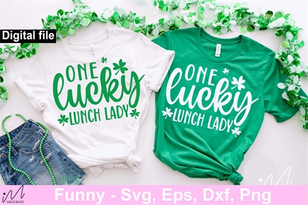 One Lucky Lunch Lady svg, Patrick's day t shirt, Clover svg