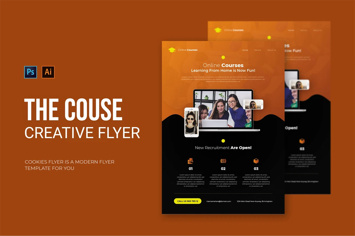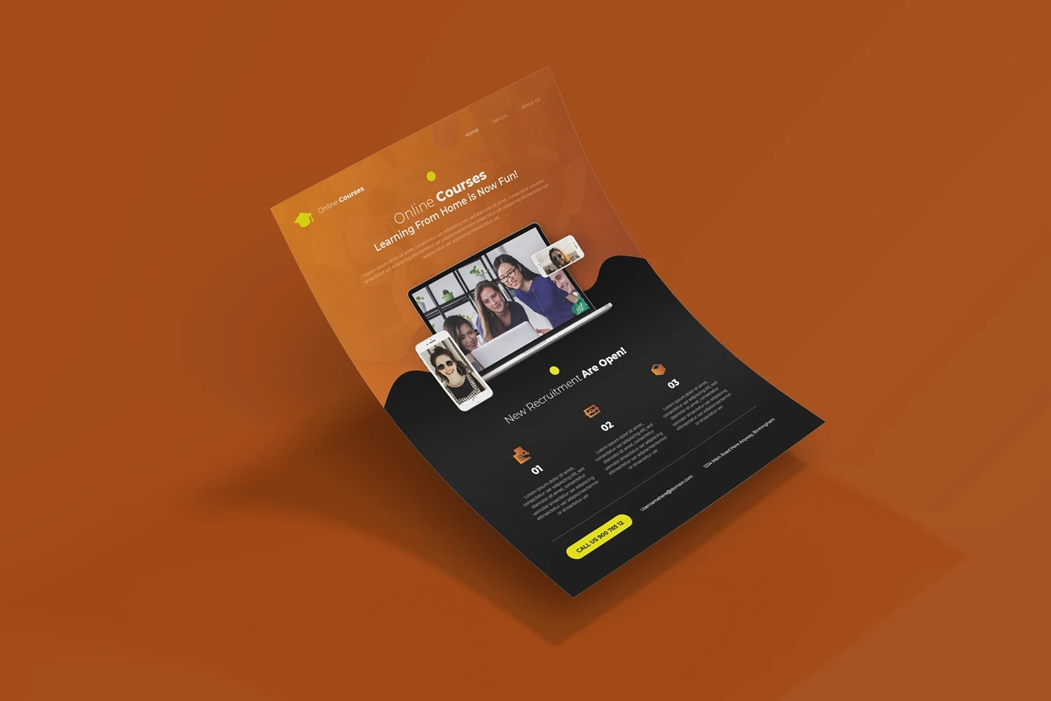 Online Couse - Flyer. This Flyer template is designed for your company's business needs. very clean and elegant, and also easily edited and adjusted to your liking