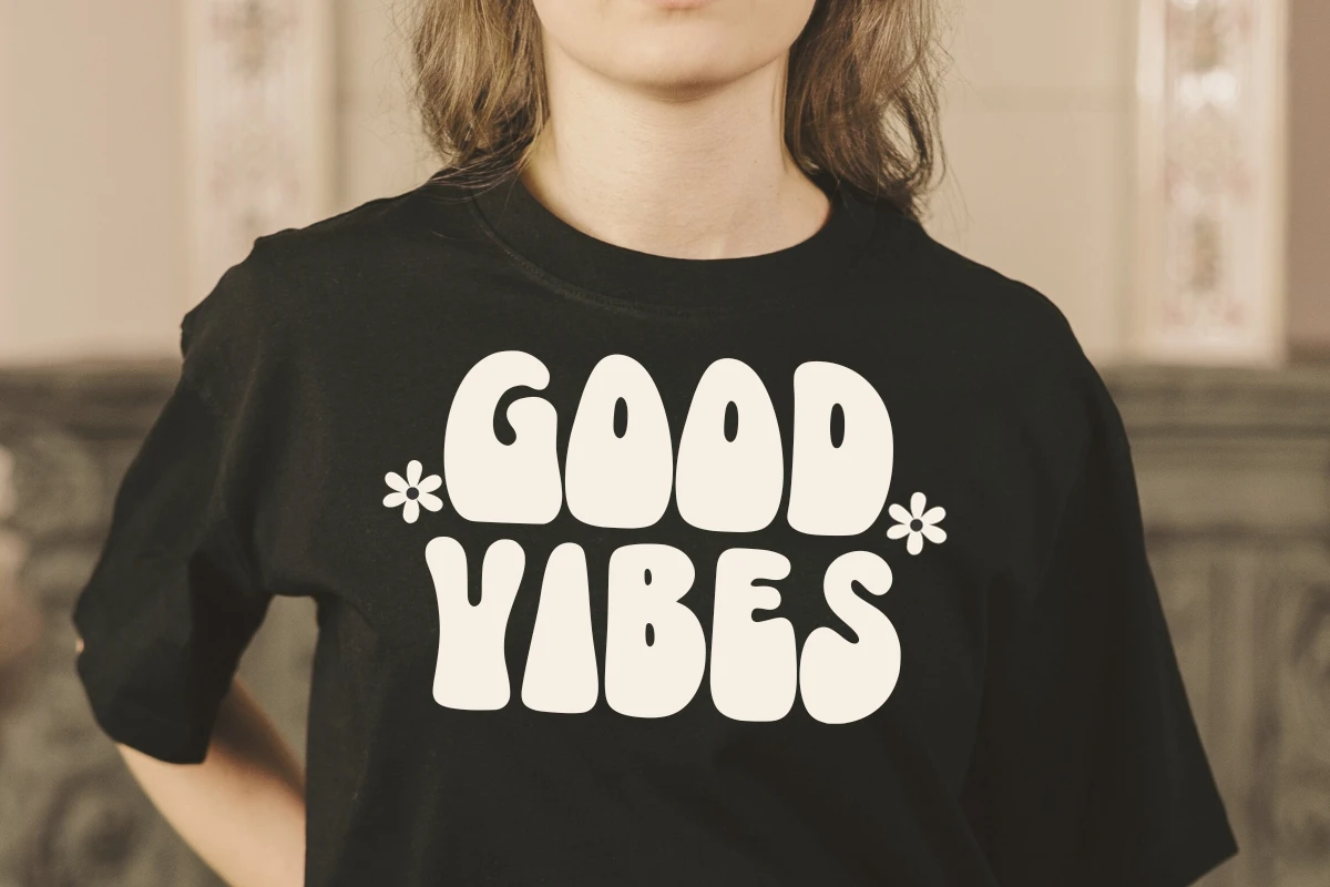 Only Good is retro groovy psychedelic cool. Great for quotes, t-shirts, tote bags, greeting cards, mugs, and any design that needs a fun look.