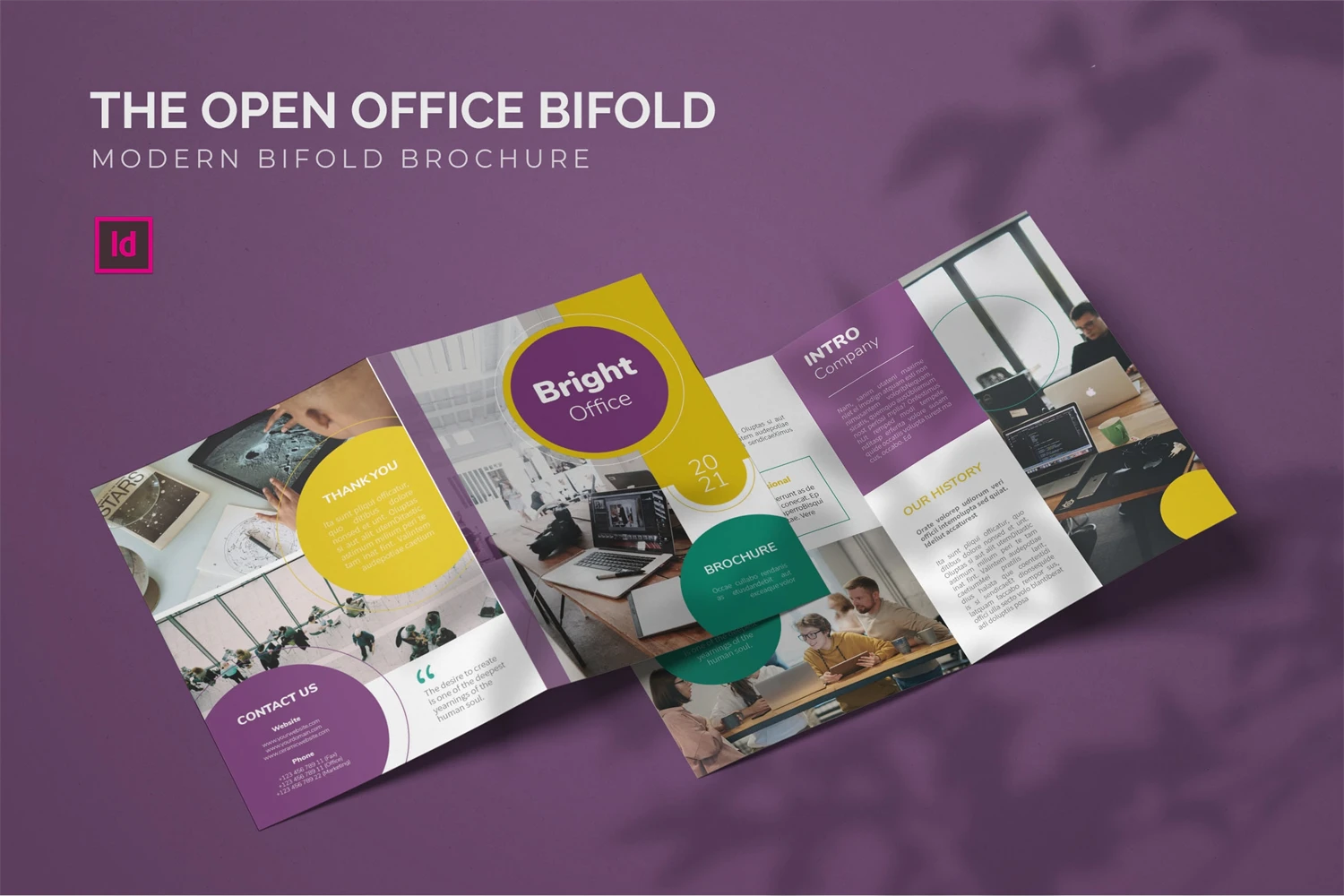 Open Office - Bifold Brochure We present this Bifold Brochure for you, simple and very elegant, and this Bifold Brochure is suitable for all types of your business, made with adobe inDesign, very easy to customize, Hope you Like it, dont forget to rate, Thanks.