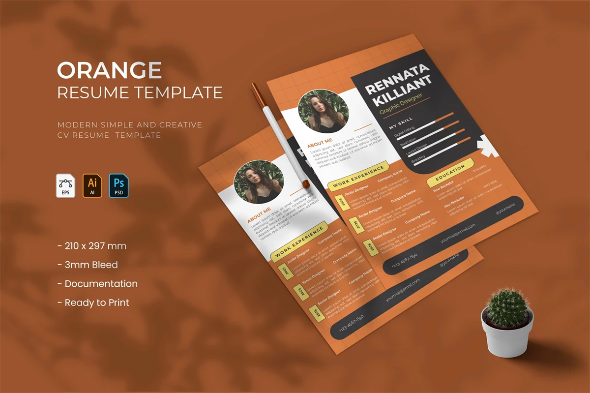 creative resume and cover letter template that will make your resume stand out from the hundreds of resumes employers get. It gives you the information you need, such as your name, contact information, social media links, education, experience, skills and interests. Also, it comes with three different color schemes.
