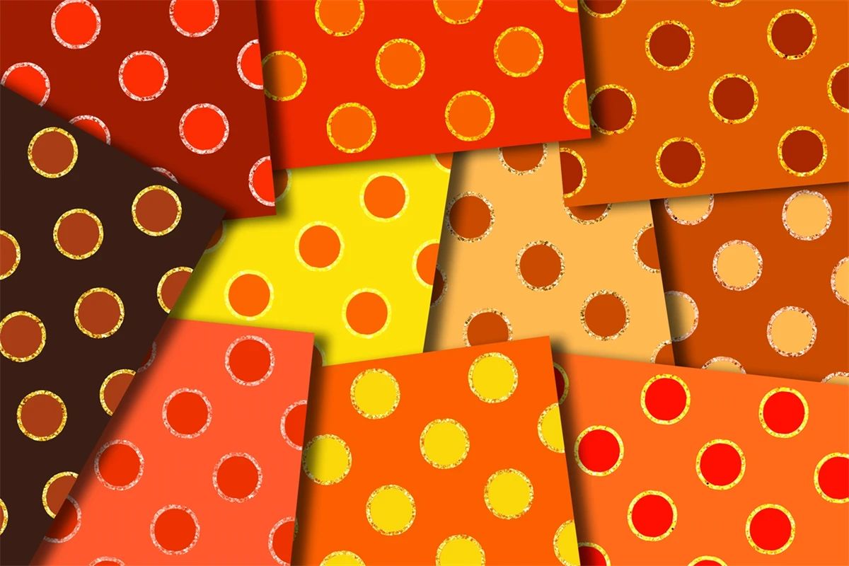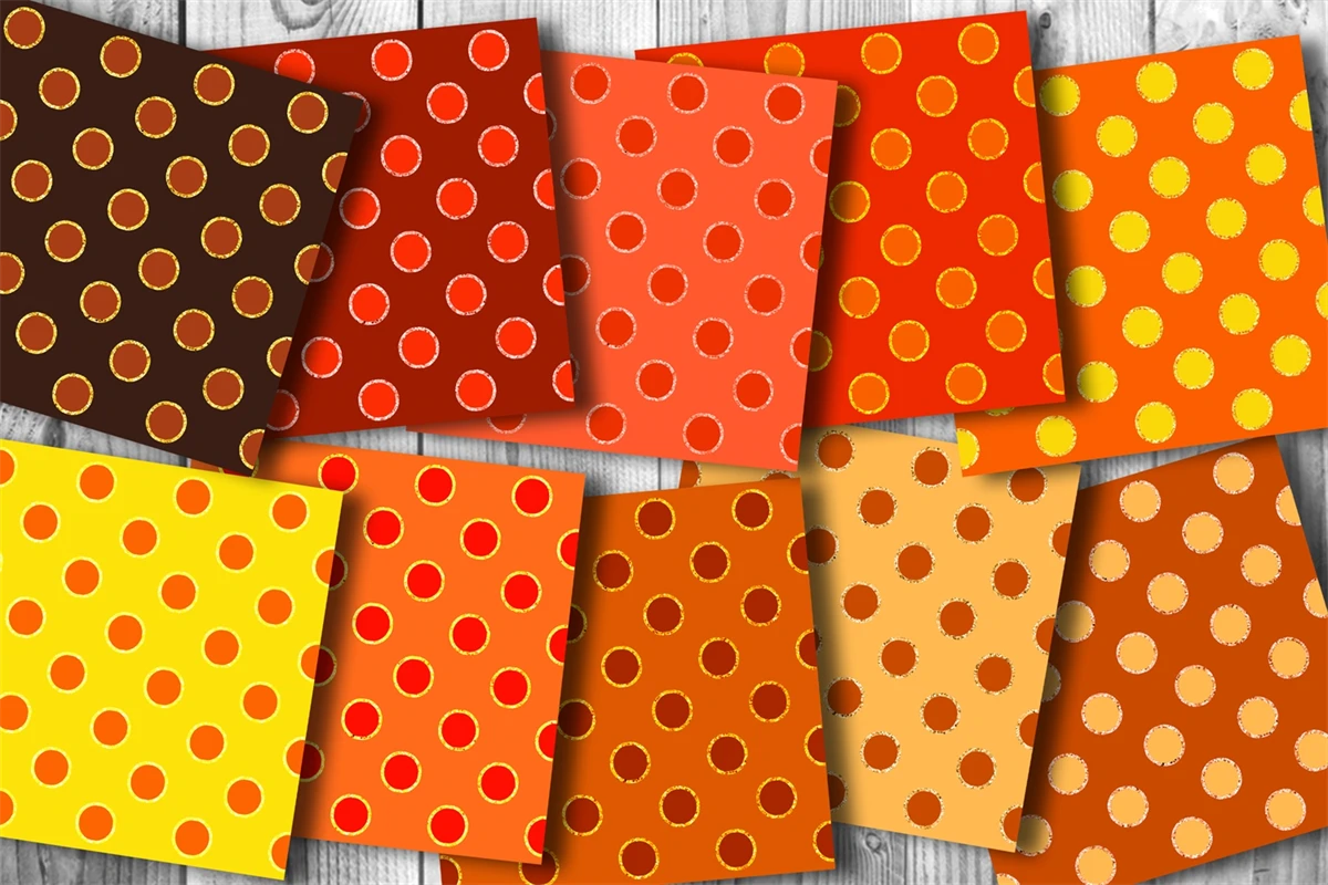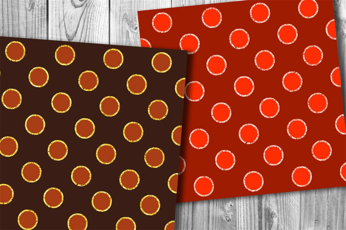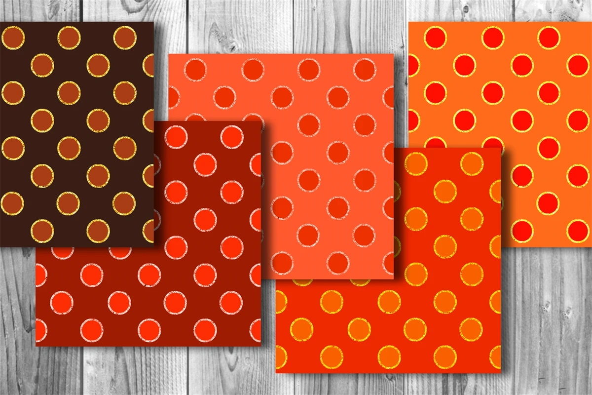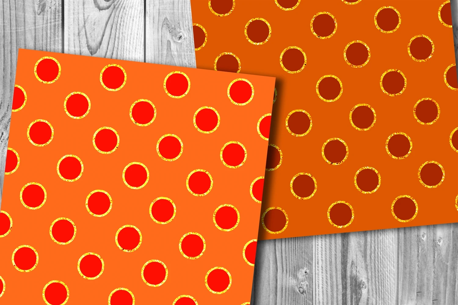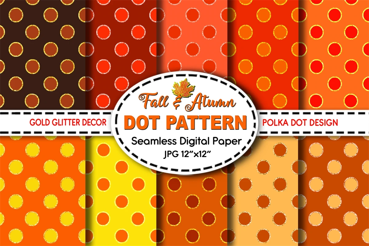 Circle Dot Pattern with Gold Glitter Decor Design Seamless Pattern Digital Paper in Fall and Autumn Theme colors for DIY Projects