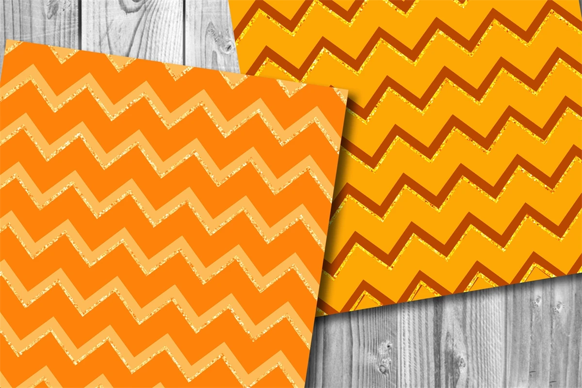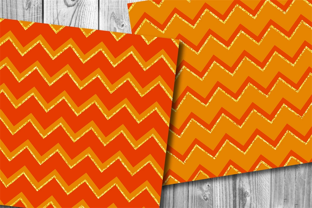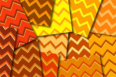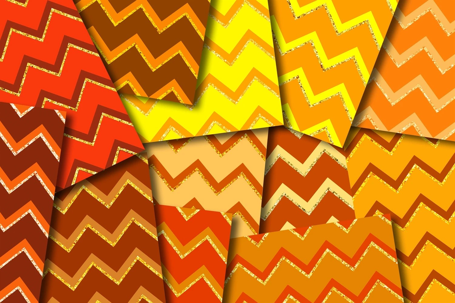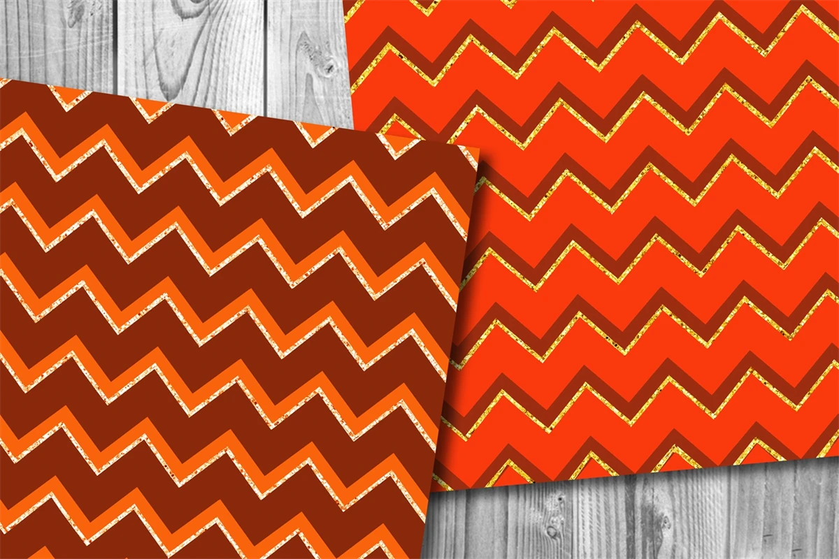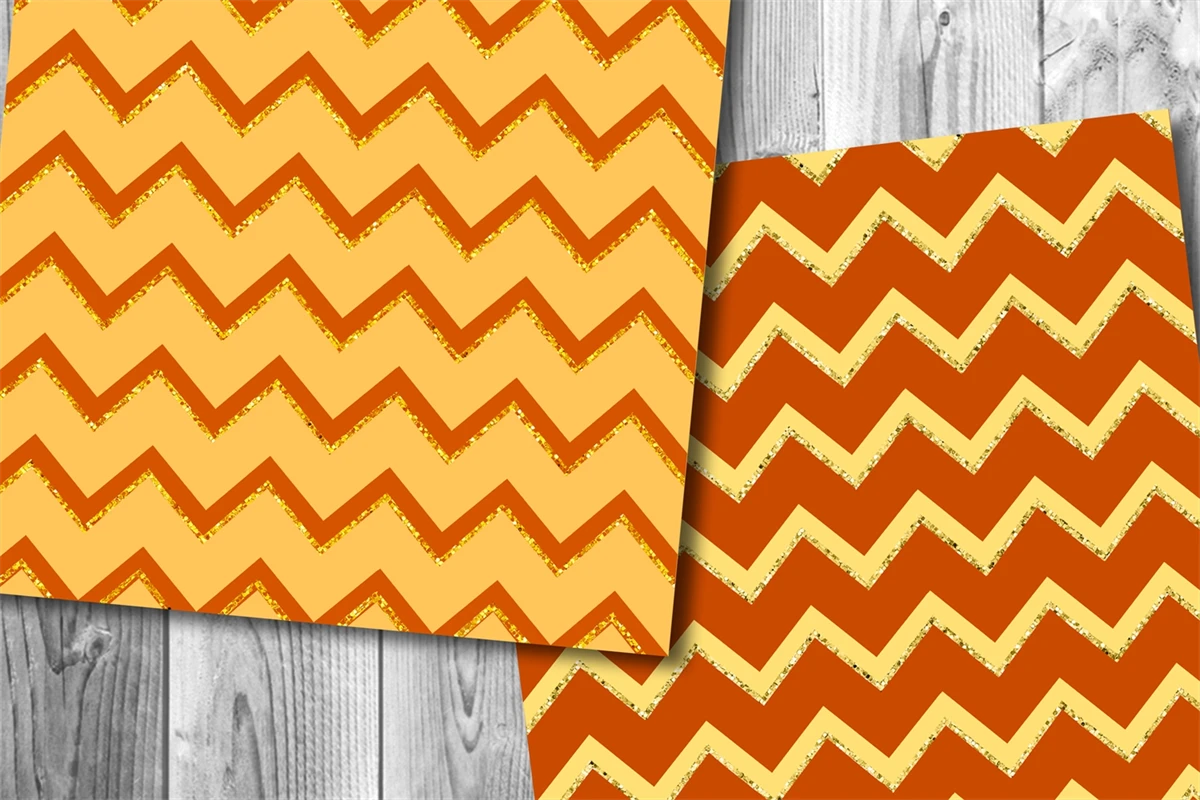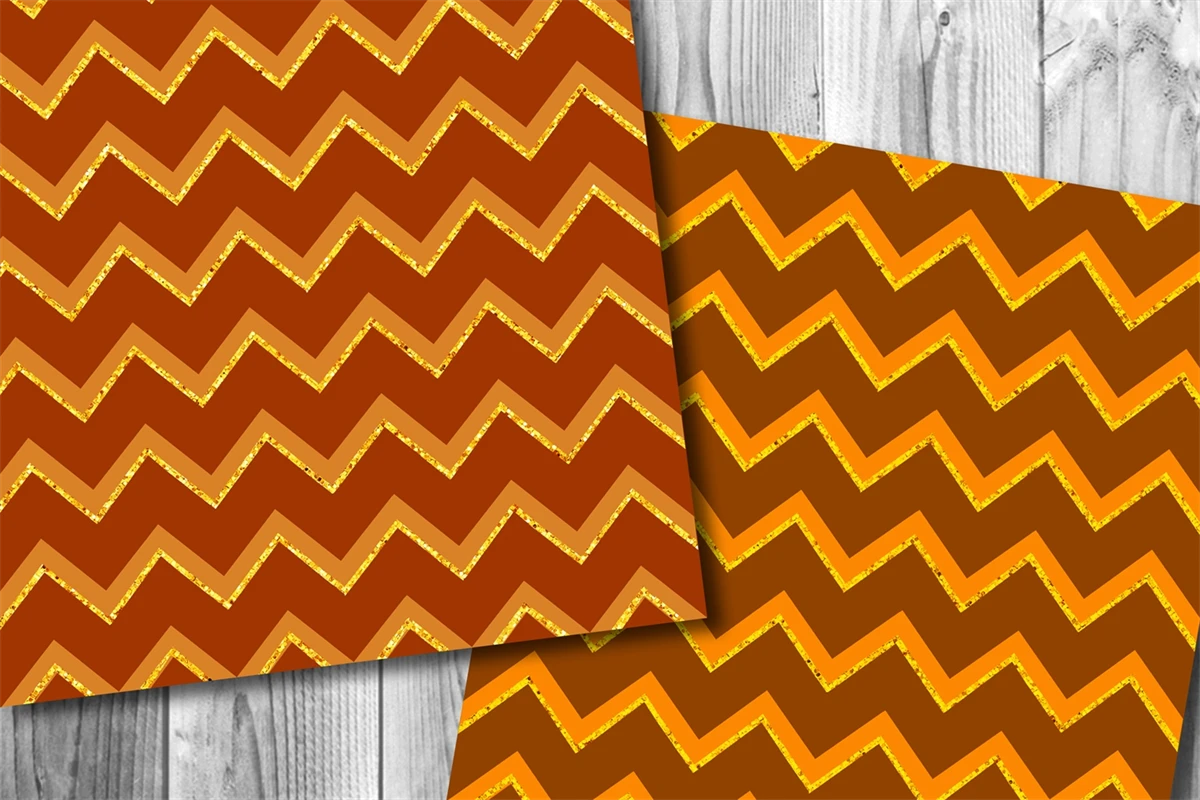 Orange Tone Zigzag Chevron Line Art Pattern with Gold Glitter Decor Design Seamless Pattern Digital Paper in Fall and Autumn Theme colors for DIY Projects