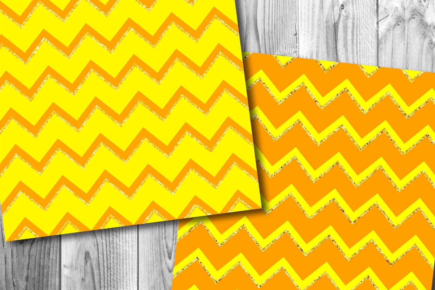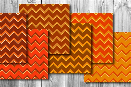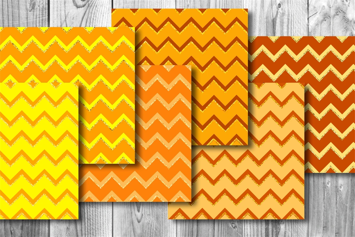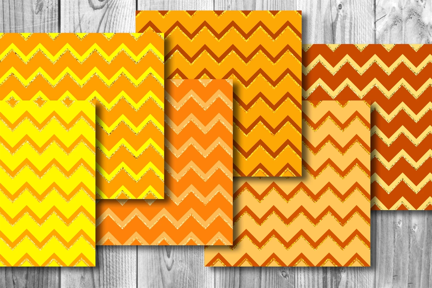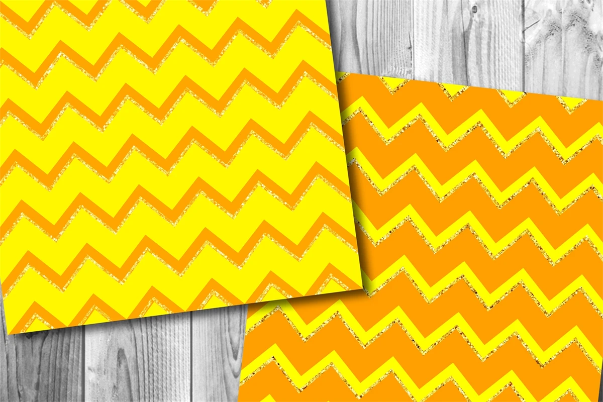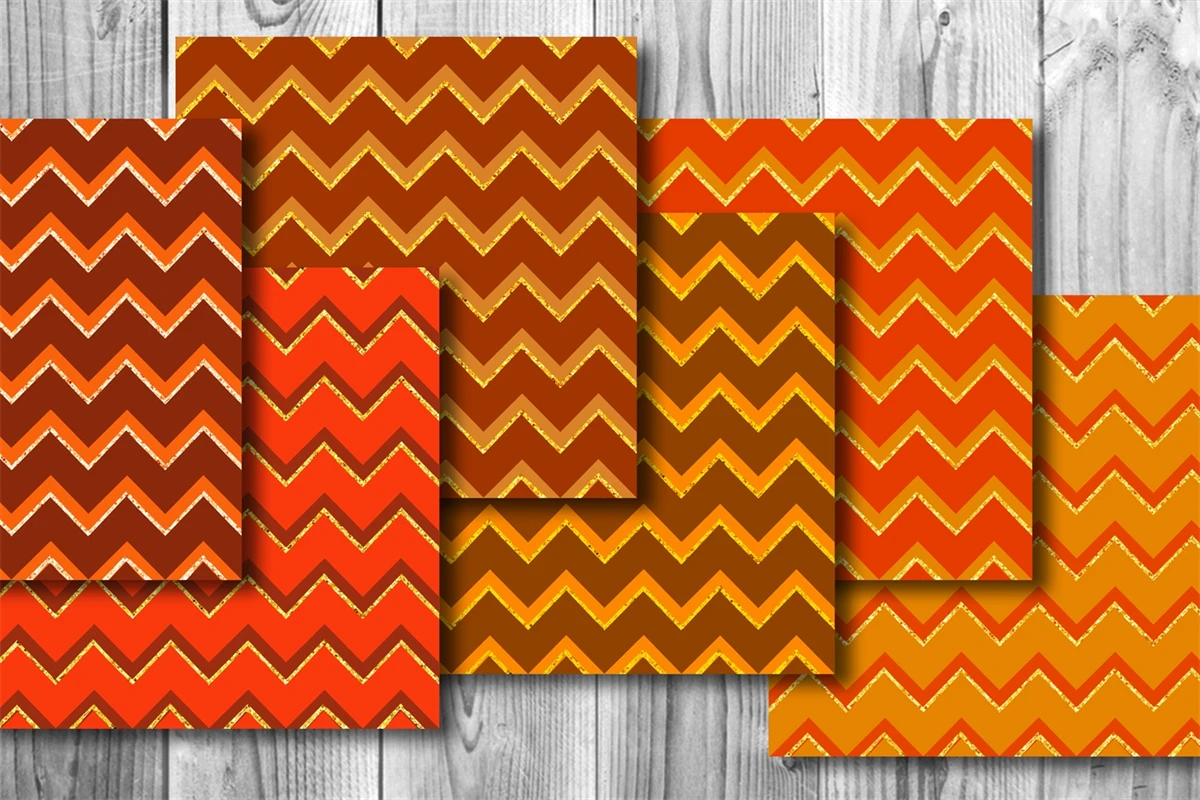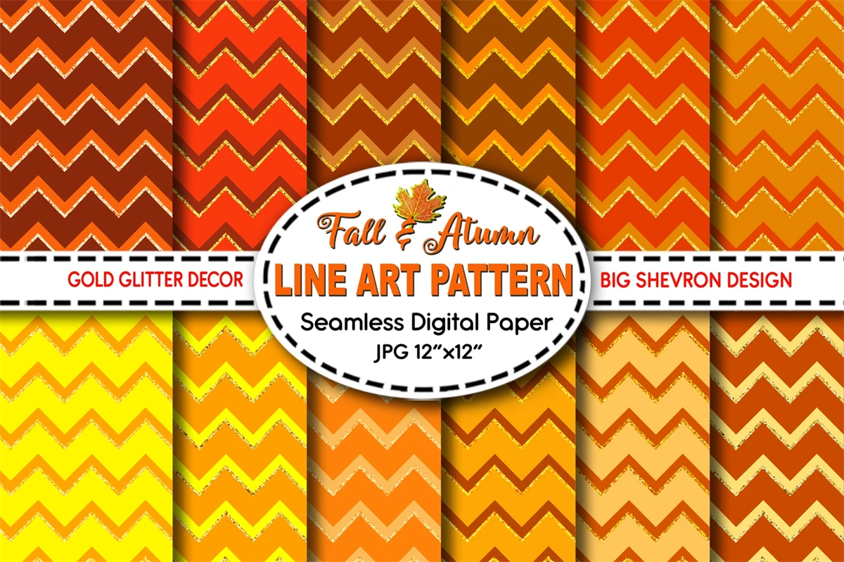 Orange Tone Zigzag Chevron Line Art Pattern with Gold Glitter Decor Design Seamless Pattern Digital Paper in Fall and Autumn Theme colors for DIY Projects