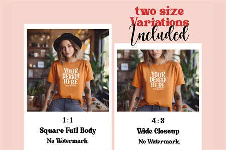 Bella Canvas 3001 T-Shirt Mockup Fall T-Shirt Mockup Orange Woman Shirt Mockup Stylish Mockup Easy To Use Mockup Stunning Model